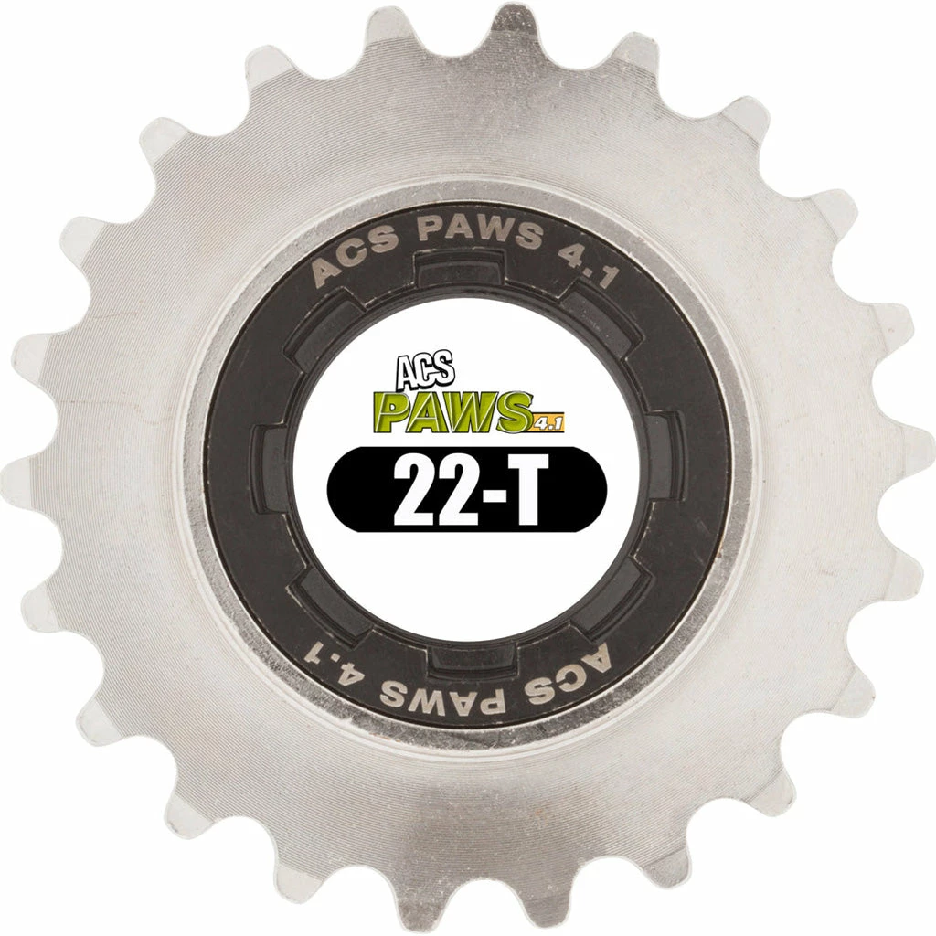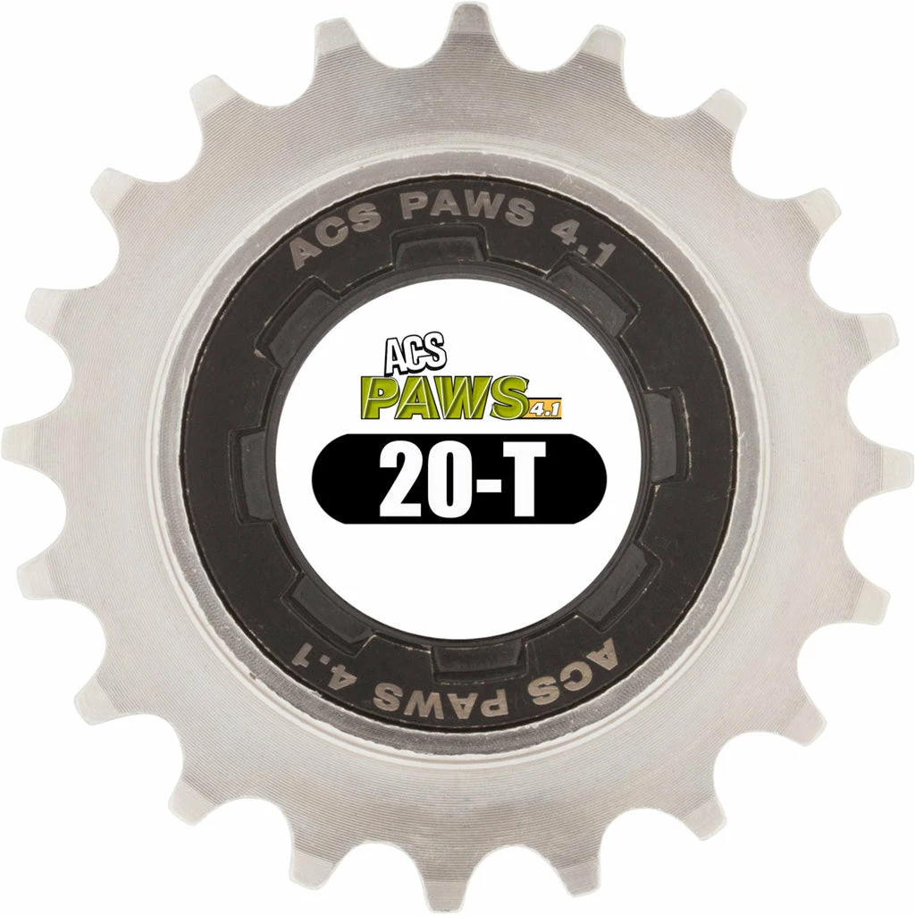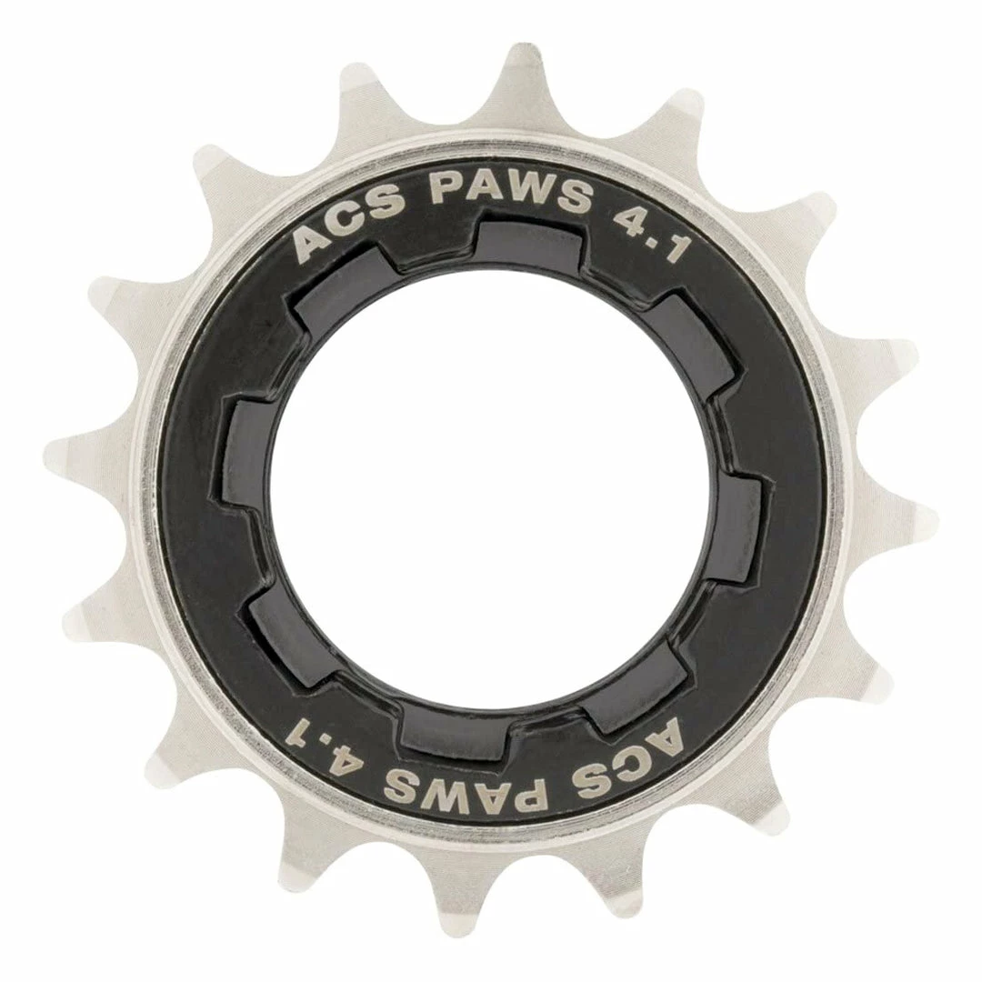 The ACS PAWS 4.1 Freewheel at J&R Bicycles is not just a step up in quality it also hits that sweet spot between excellent durability and affordability. These are the same design as Paws and use a standard 4-prong removal tool. No worries with messing with your axels. Paws 4.1 freewheels are upgraded with a black center ring and nickel-plated sprocket ring. This is the best BMX freewheel available today. Get your paws on it.