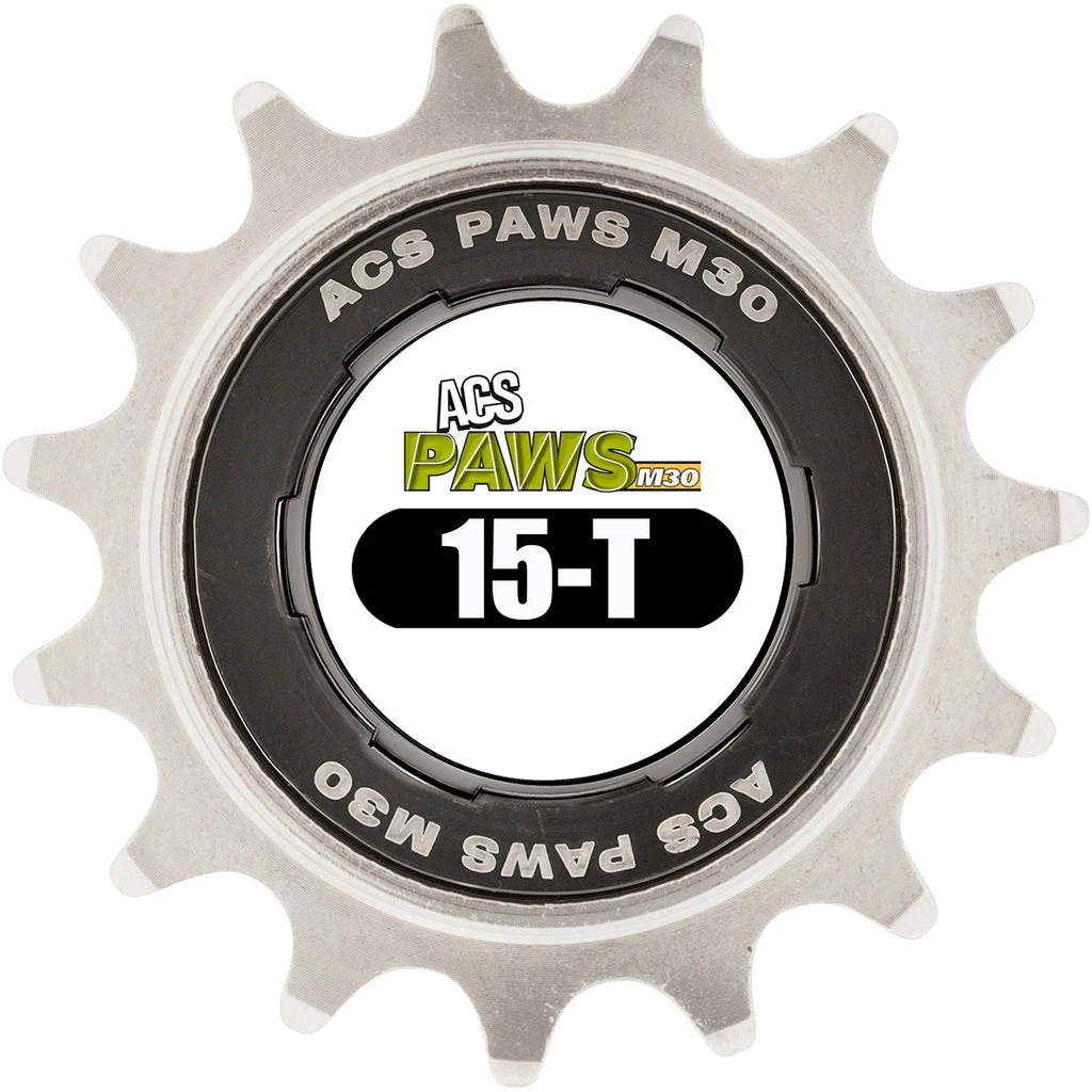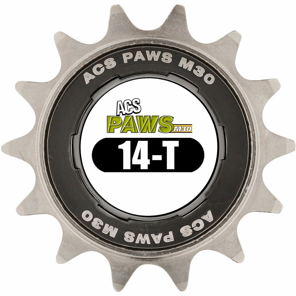 The ACS PAWS M30 Freewheel at J&R Bicycles were built to last with cold-forged high-grade steel and precision CNC’d to keep you at top performance levels. M30s feature a nickle-plated sprocket rings with a black inner body and 3 pawls with simultaneous engagement on 2 tracks of loose ball bearings. Paws M30s fit metric M30x1mm threads and are not compatible with freewheels that are 16T or larger.