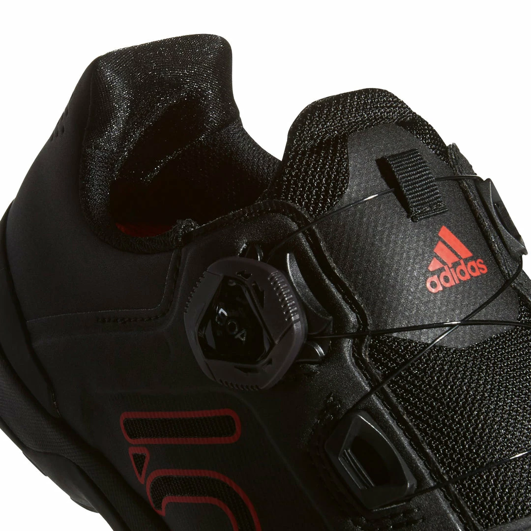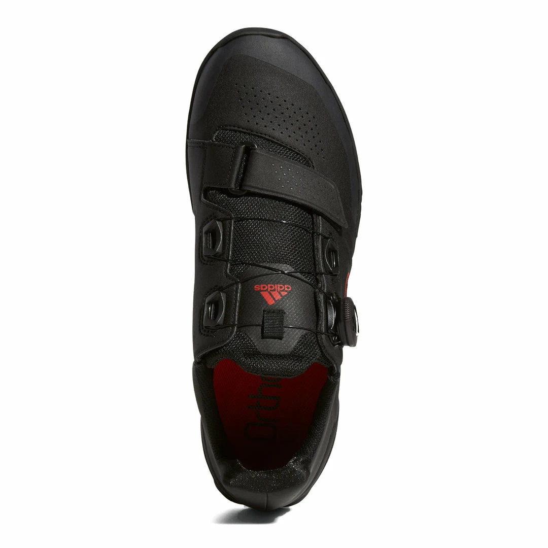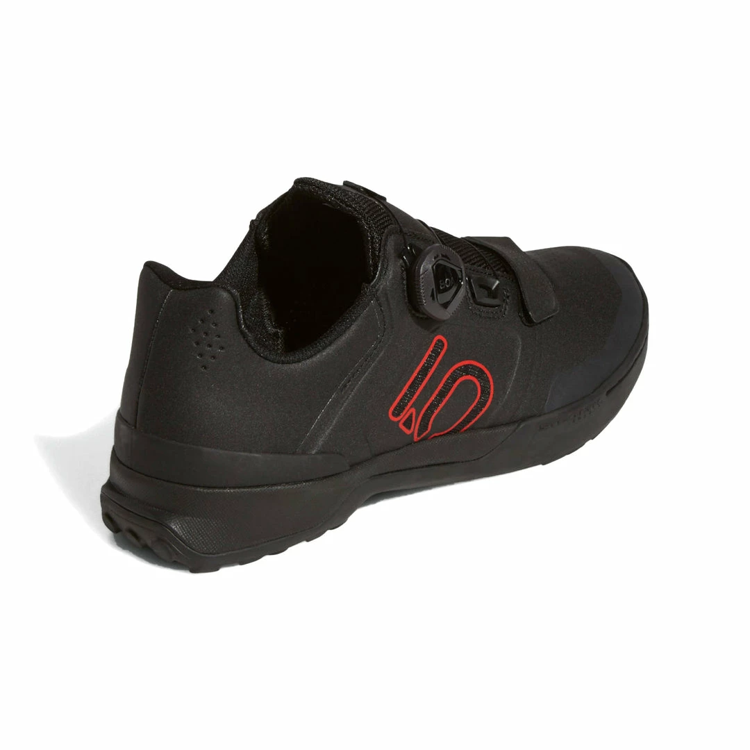 The adidas Five Ten Kestrel Pro Boa Clipless Shoes-Core Black/Red/Grey Six feature Stealth® C4 rubber soles, giving you the perfect mix of durability and stickiness for excellent pedal grip and performance. The Boa® Fit System gives you the ability to make the micro adjustments needed to dial in a secure, comfortable hold around your feet. A weather resistant upper, combined with breathable mesh inserts, wick away the elements, helping to keep your feet comfortable while performing. And adidas has committed to more sustainable options by utilizing recycled material. 20% of the pieces in the upper are made with a minimum of 50% recycled content.