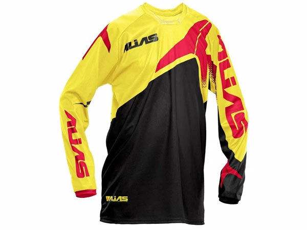 The Alias B1 BMX jersey features 100% moisture wicking sublimated polyester that is fade & stain resistant. Raglan sleeve construction and unmatched durability to meet the demands of BMX racing.