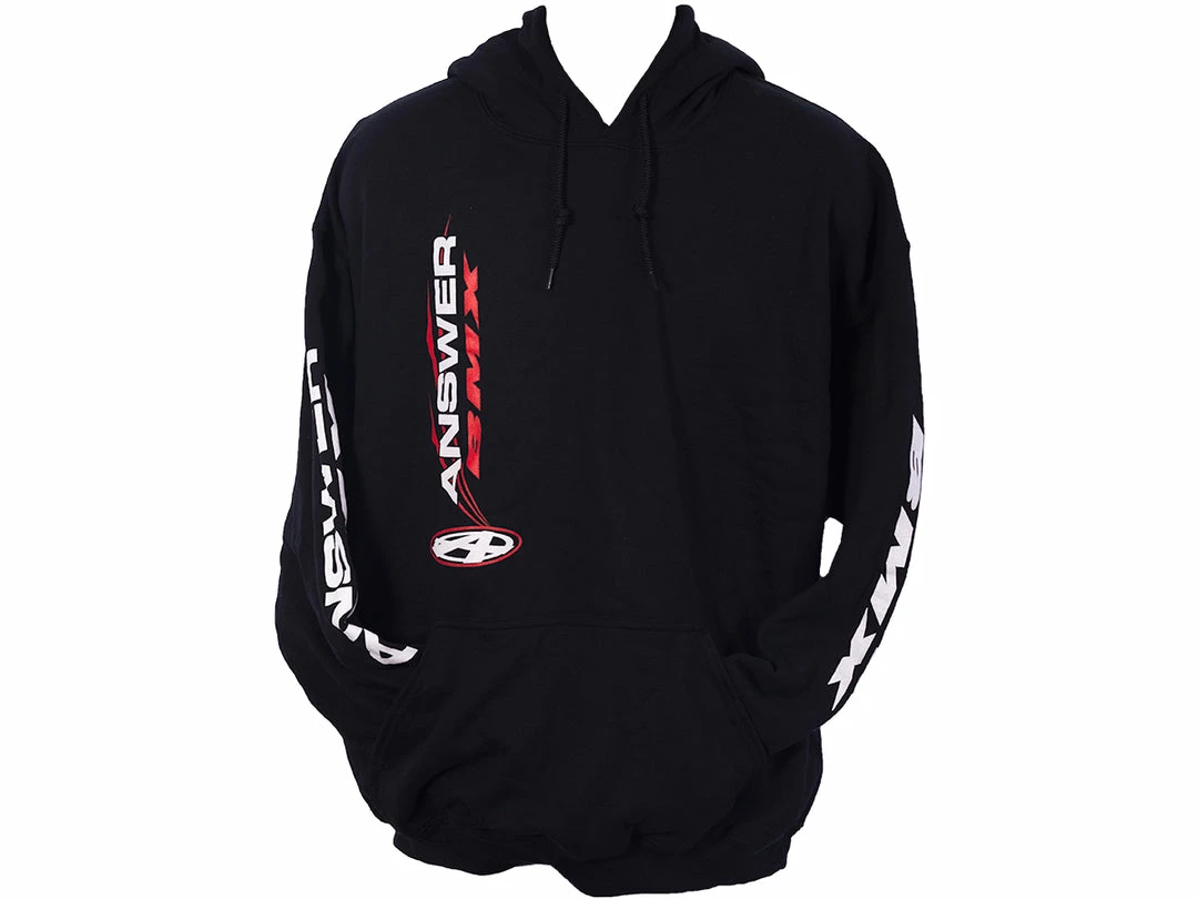 The Answer BMX Hoodie-Black at J&R Bicycles is a fashionable and comfortable way to show off your love for the Answer brand and of course your BMX pride. With a drawstring hood and roomy front pocket you won’t just look good, you’ll feel good too. Attention-grabbing graphics on the front, back, and along both sleeves are sure to make an impact no matter where you wear this hoodie.
