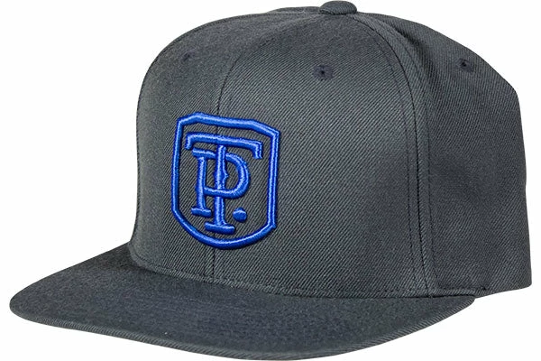 Grey Snapback hat with Blue embroidered logo One size fits most