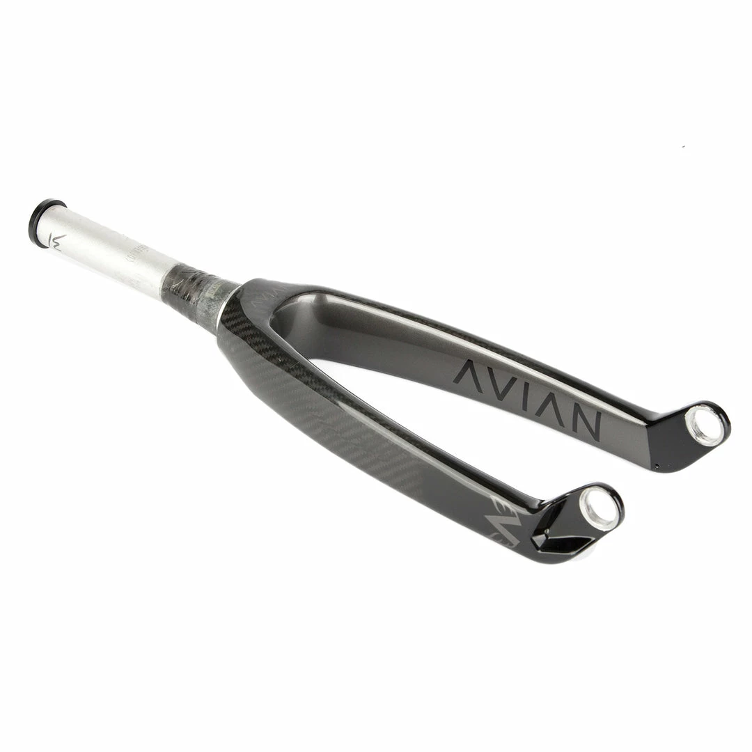 The Avian Versus Tapered Carbon Pro BMX Race Fork-20″-20mm is reliable, efficient, and lightweight. The steerer tube is made of 4mm thick 7005 aluminum and features an internal locking system to eliminate expander plugs star nuts that often compromise fork strength. The aero carbon fiber legs are made of highly durable Toray fiber and the 20mm alloy drop-outs make the Versus fork one of the stiffest on the market today.