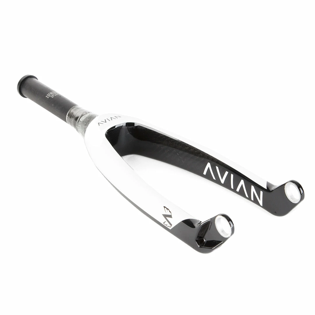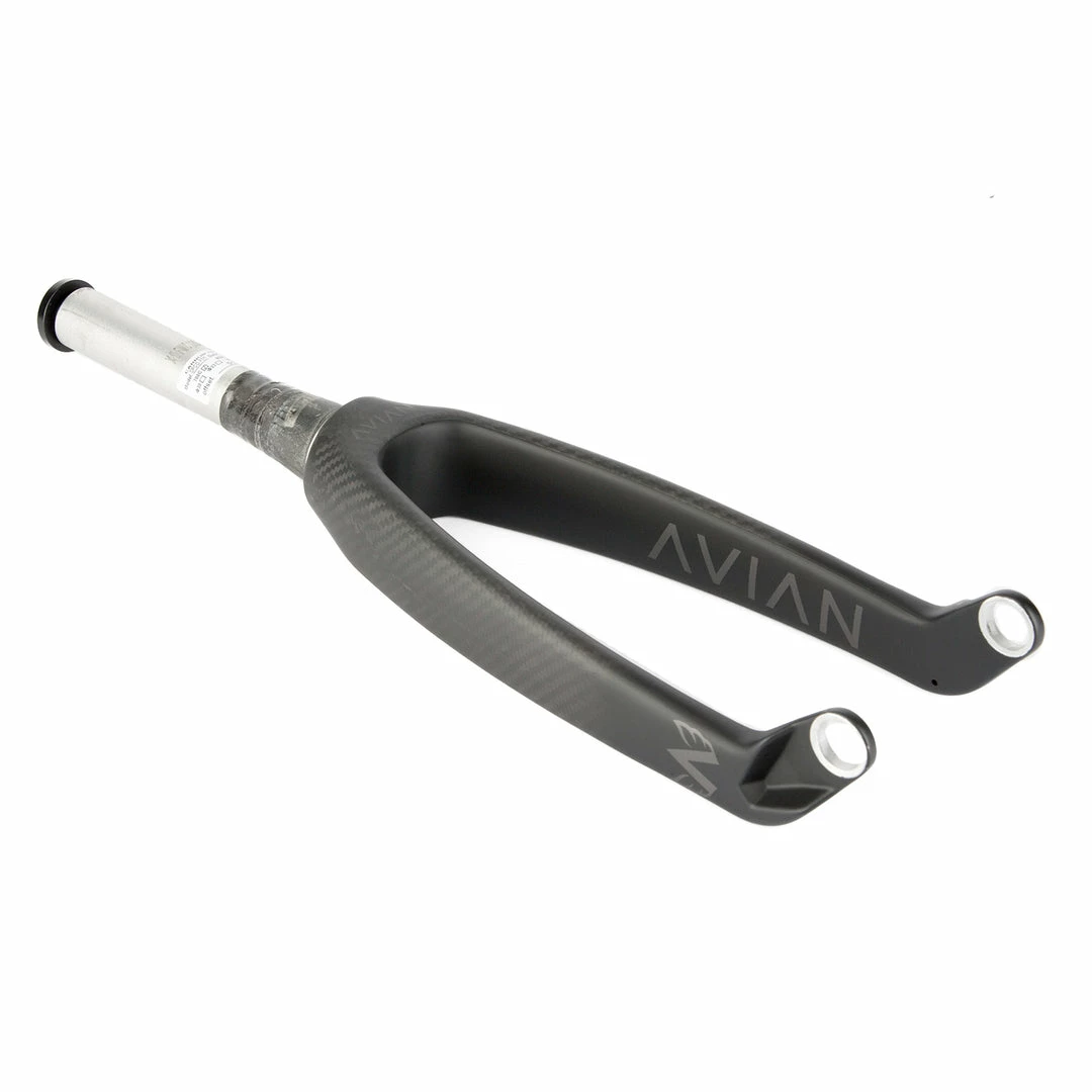 The Avian Versus Tapered Carbon Pro BMX Race 24″ cruiser fork with 20mm dropouts is reliable, efficient, and lightweight. The steerer tube is made of 4mm thick 7005 aluminum and features an internal locking system to eliminate expander plugs & star nuts that often compromise fork strength. The aero carbon fiber legs are made of highly durable Toray fiber and the 20mm alloy drop-outs make the Versus fork one of the stiffest on the market today.