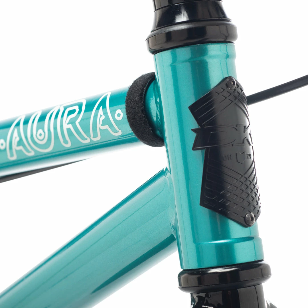 The biggest of the Aura collection, the DK Aura 20″TT BMX Freestyle Bike-Ocean rolls on full-sized twenties on a smaller frame with a 20” top tube to fit smaller folks. Sealed bearings all around, a 1-piece seat/post combo, alloy rims and three-piece chromoly cranks handle business. For this season we are offering two new colors, with glow-in-the-dark graphics for a fun and unique look that shines night and day. The Aura 20” is an affordable bike to get your BMX mind in the right place.