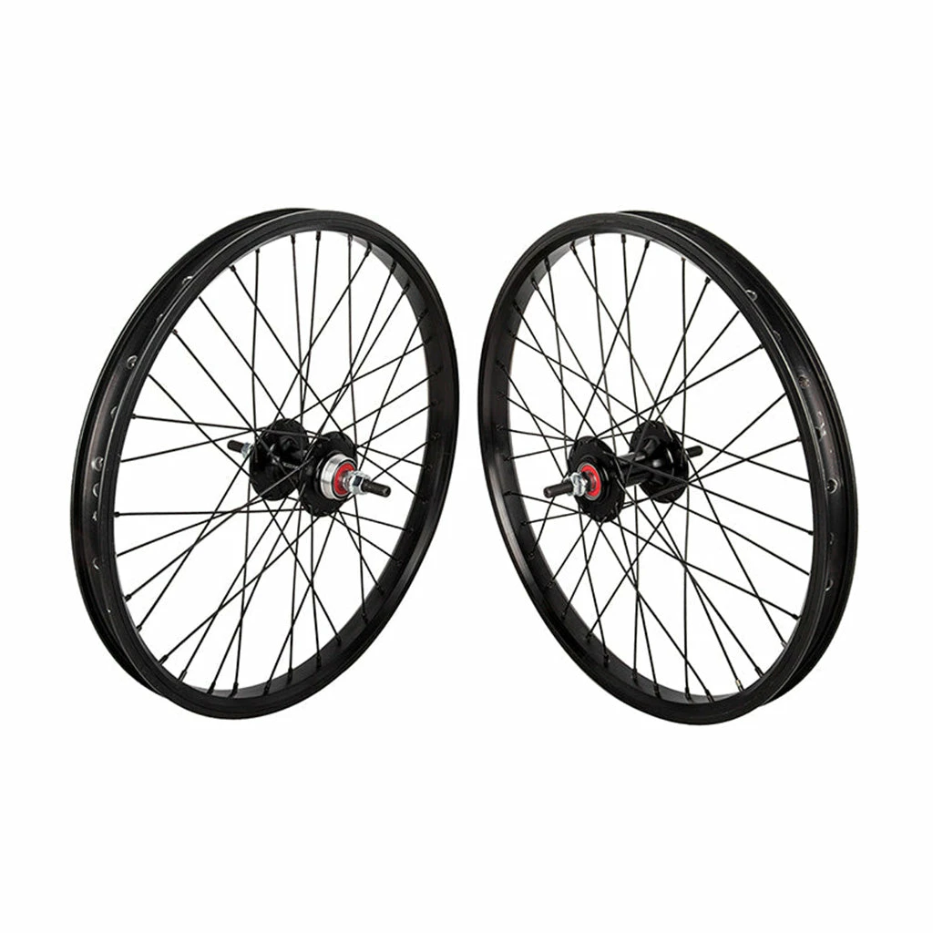 The Black Ops DW 1.1 20in BMX Wheelset at J&R Bicycles sports an old school design aesthetic but is crafted with premium tech and materials for modern riders. This wheelset features sealed Black Ops MX1100 hubs that are threaded with high-quality stainless steel DT spokes for a 16T-22T freewheel and are laced to 36H double-walled rims. The 24mm inner rim allows compatibility with many modern sizes so whether you are looking to spruce up an older bike or up your modern day wheelie game, these are the wheels for you.