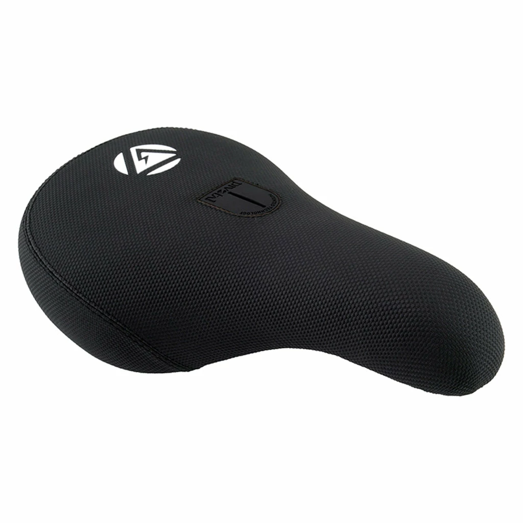 The Black Ops HT-1 Pivotal BMX Seat-Black at J&R Bicycles is a seat built for comfort with a sleek design inspired by the seats in classic muscle cars. This pivotal seat features a classic 3-panel design with a standard pivotal patch on the top for easy access to make quick adjustments. The durable top cover is made of tear-resistant PVC and hides support bumpers located on the front and rear. A high-density foam cushion provides comfort when and where you need it and is mounted to a slim profile base.
