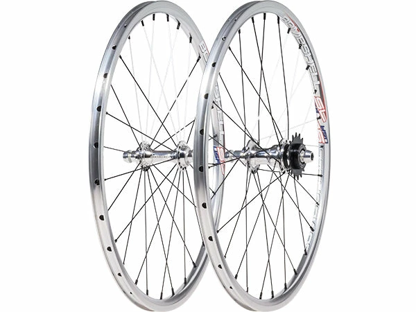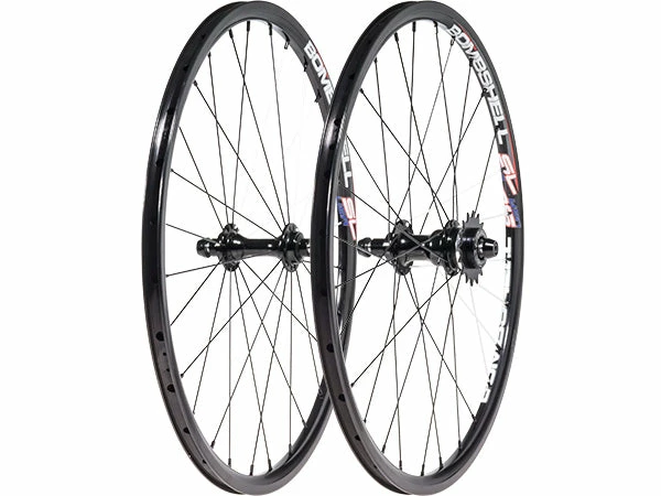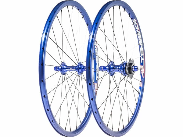 The Bombshell BMX Jet Mini 20×1-1/8″ wheelsets feature sealed bearing cassette hub with double-wall aluminum rims. These Bombshell BMX wheels also feature s section of white spokes that give it a “propeller” effect when spinning.