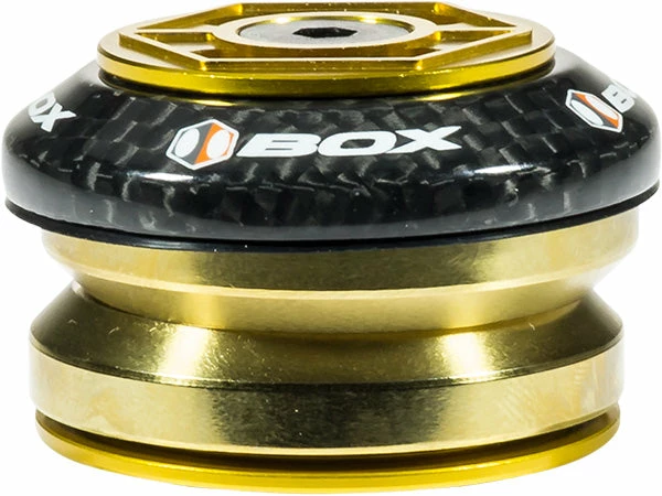 The BOX Components Glide Integrated headset features two super smooth, titanium nitride coated, sealed, 45 x 45 bearings. The BOX headset also features CNC machined top aluminum cap with a carbon top race and expander that eliminates the need for a star nut. The expander works on chromoly, aluminum and carbon steer tubes.