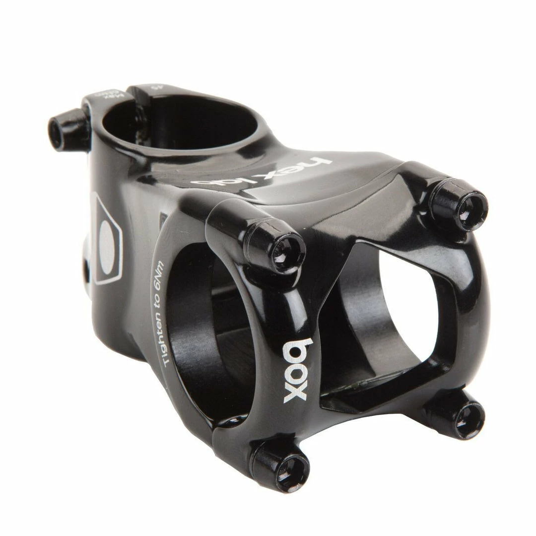 The Box Hex Lab Mini Front-Load Stem is a technical masterpiece of Box’s Oversized Technology design philosophy. You can tell right away just by looking at the shape of the 3D cold forged aluminum shape that this stem is different. Following the Oversized ethos, they’ve moved material from low-stress parts of the stem to the high-stress areas where it is actually needed. This results in a stronger and lighter stem with a large clamping surface. The idea here is to increase the stiffness of the handlebars in relation to the pedals allowing for better, stronger, and more reliable power transfer. Cool feature of this stem is the hollow chromoly clamping bolts…gotta save as much weight as possible, right? This stem will only fit a 1″ steerer tube, and handlebars with a 28.6mm diameter clamping area.