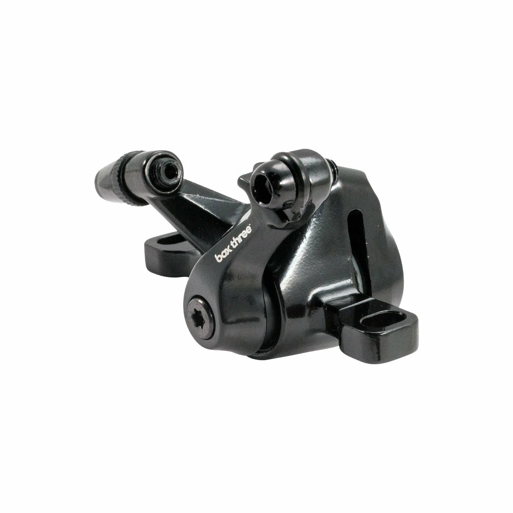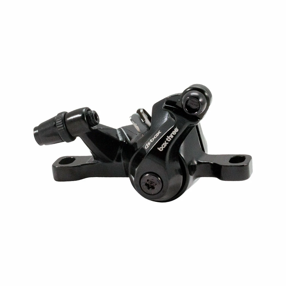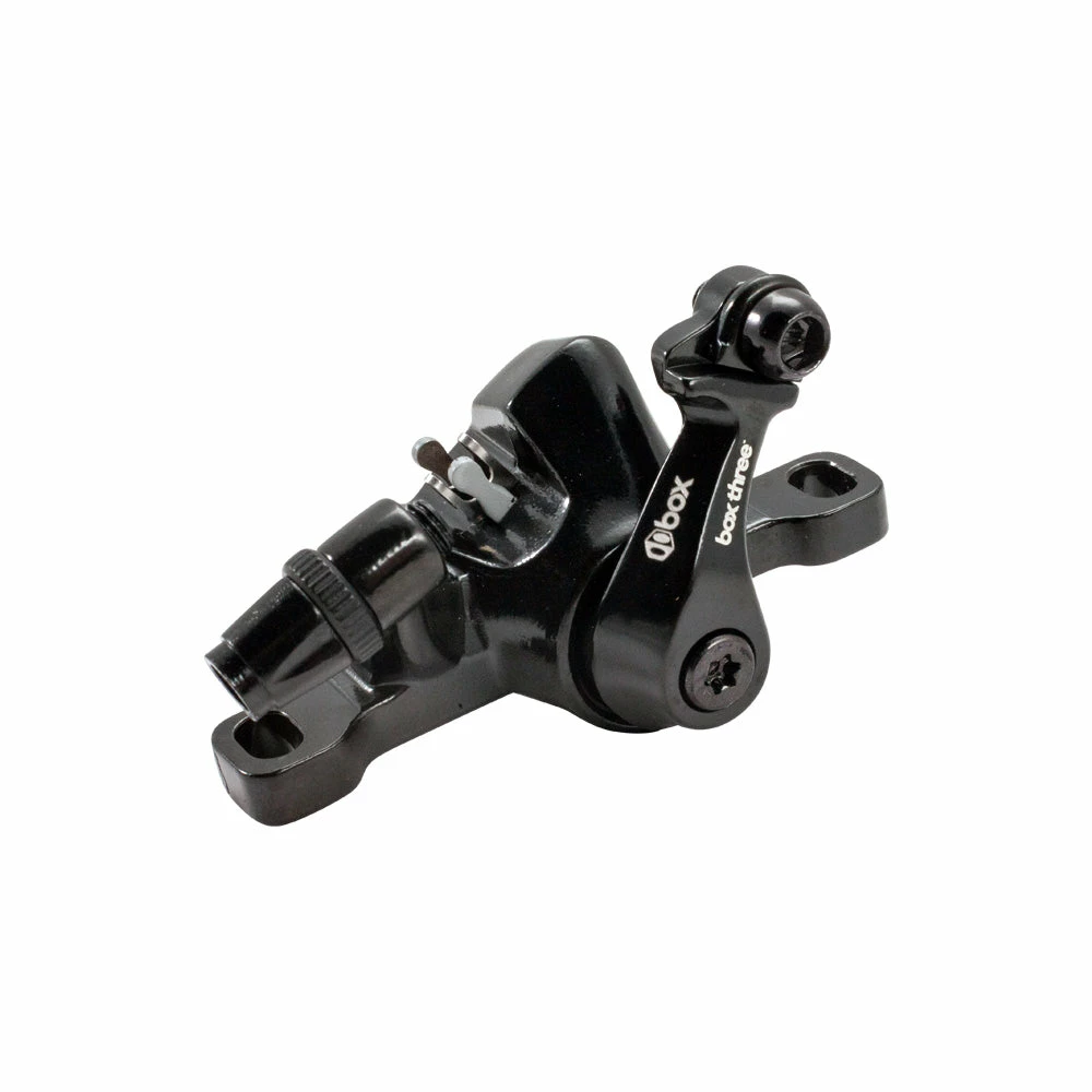 The Box Three BMX Disc Brake Caliper is here! With a post style mounting interface made of carbon steel, this disc brake caliper is all you need to improve control. Weighing only 130 grams, this lightweight gadget will spring you smoothly through every turn. All you need to do is focus on the finish line.