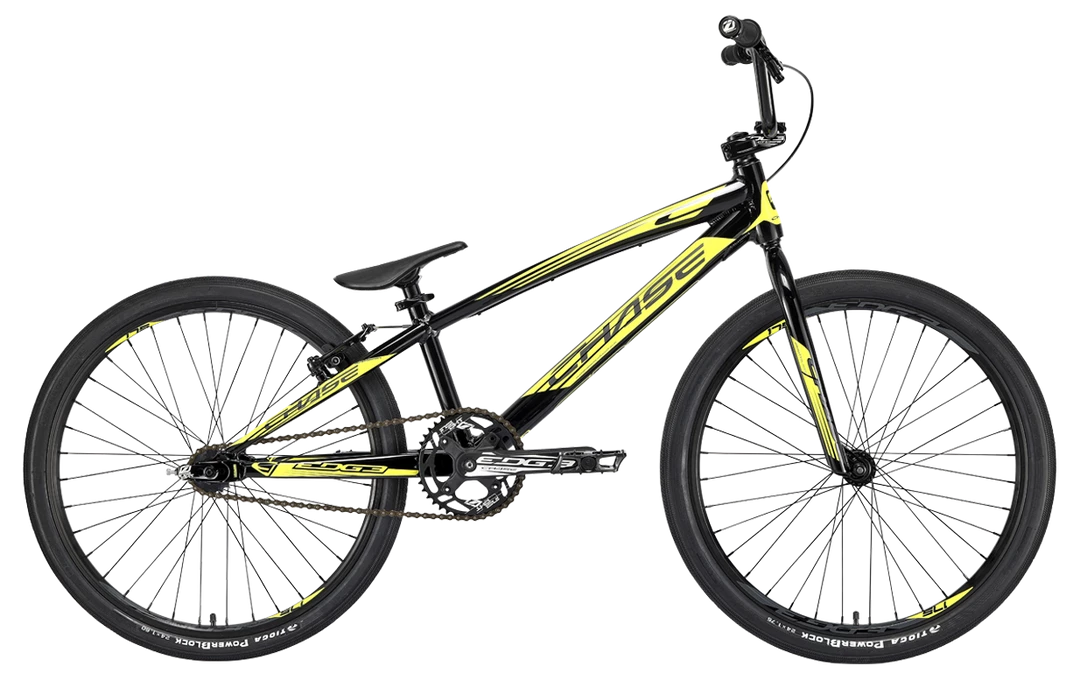 The Chase 2020 Edge Cruiser 24″ BMX Bike-Black/Yellow is a pure BMX race machine. It has been one of the most sought after race bikes in BMX racing due to the history of the company and our attention to detail. Each year we want to improve our design and style and for 2020, we even surpassed our own expectations! The 2020 Chase Edge frame look has changed drastically with a Black and Neon design and this showcases the upgraded Edge frame that has Triple butted Premium Ultralight Alloy Hydroformed tubes on the entire Edge complete bike size range. The Chase Edge has some of the best parts made for a complete BMX race bike: Tioga PowerBlock Tires, a KMC Chain, Tektro brake set, Insight chainring, grips and chain tensioners, and Pivotal seat/seat post combo, as well as a rear cassette hub. All these parts together help give you the Edge over your competition, and to make the 2020 Chase Edge one of the most dialed in complete bikes in BMX. Edge out the competition on and off the track with the new 2020 Chase Edge complete race bike!