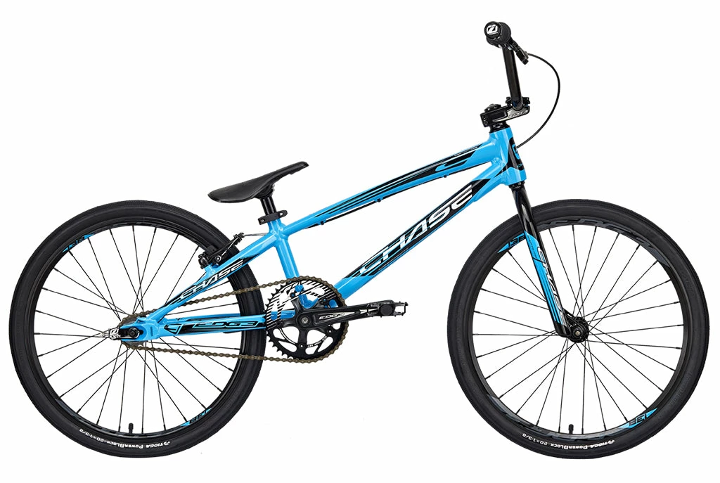For 2019 the Chase Edge line of race bikes were upgraded with a new Triple butted Premium Ultralight Alloy Hydroformed tubed frame. The Edge has some of the best parts on a complete BMX race bike, including a new Chase rear cassette hub, Tioga Tires, Tektro brake set, Insight chainring, grips, chain tensioners, KMC Chain, and a Pivotal seat / seat post, all help round out the Edge to make it one of the most dialed in complete bikes in BMX. Edge out the competition on and off the track with the new 2019 Chase Edge complete race bike!