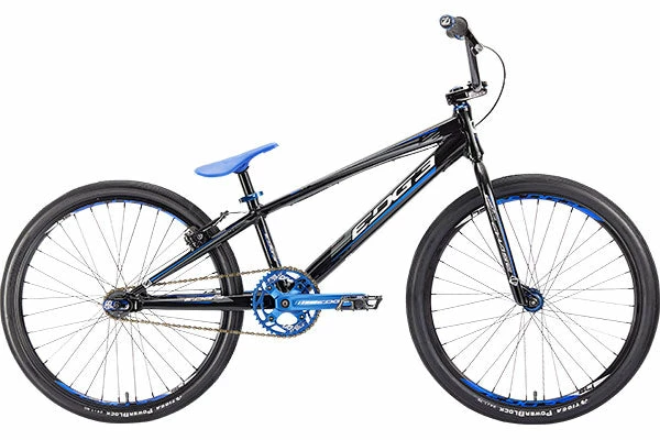 The Edge hydroformed frame is the most advances frames for a complete bike at this price in BMX! Upgrades include a new 90 point of engagement sealed bearing Cassette hub, insight C.O.G.S. grips, and hi end featured parts such as Tioga PowerBlock and PowerBand tires, Tektro brakes, Insight Chain Tensioners, KMC Chain and Blue Pivotal seat, and Insight sprocket help round out the Edge bike, to make it the best value for an upper-level BMX complete race bike!