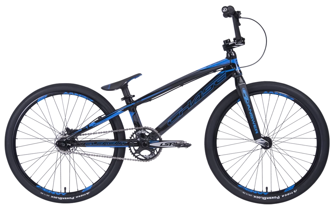 The Chase Element bike has always been about excellence and being a bike built for Pro level racing. For 2020, we looked to our Chase Pro riders Connor Fields and Joris Daudet and asked them what they loved he most about their Chase ACT 1.0 race bikes. They noted how Disc brakes made a huge difference on the race track, how they loved the ease and smoothness of the Press Fit Bottom Brackets, and the talked about the ease of use of the improved rear chain tensioner systems they have on their bikes. So we took all of these features and added them to the 2020 Chase Element bikes. We added a Shimano Hydraulic Disc Brake, a BB86 Press Fit Bottom Bracket on the frame, and we incorpotrated the same Drop out design on the ACT 1 and RSP 4.0 frames onto the Element. We also added in a 31.8mm Chase Handlebar and Top Loading stem, to make this the ultimate Pro level complete race bike. Next we made the bike literally smoother and faster, by adding Tioga FASTR X tires, the only complete bike to come with this Pro level tire in BMX! Matching the speed of the tires is the upgraded rear hub, thats laced up on Sun Ringlé Rims, with the Chase Element Triple Precise clutch system has less drag while offering fast engagement. Other standout features include Elevn Pivotal seat and Aero system post, Excess LSP cranks, Insight 4 bolt chain ring and C.O.G.S. grips, and a KMC Chain. The 2020 Chase Element complete bike is the ultimate complete BMX race bike offered in BMX today!