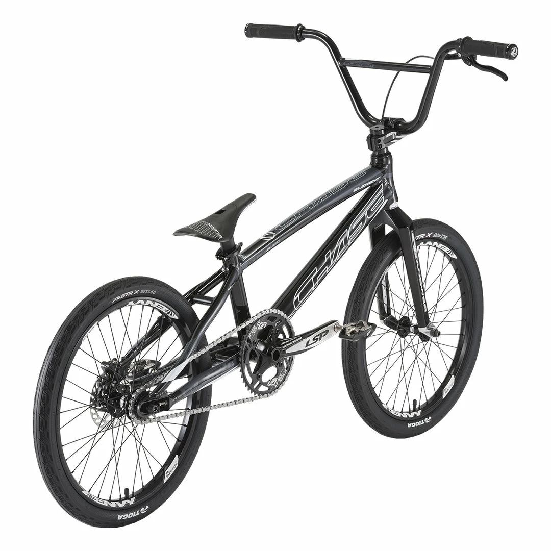 Building a custom Pro level race bike can be a difficult task while trying to stay within a budget. With the Chase 2021 Element Pro XL BMX Race Bike-Black/White, we did all the hard work for you. We wanted to offer a bike that our Chase Factory Pro riders could race right out of the box, while taking into consideration that the cost needs to be realistic for everyday racers who still want the best bike. With the new 2021 Chase Element, we have done just that, offering you the best bike for the price! The 2021 Element utilizes the same geometry as our Championship winning ACT and RSP race frames. The Element frame features Hydroformed and butted tubing, a new integrated chain tensioner / disc brake mounting system, a Press Fit Bottom Bracket, and a 31.8 Handle Bar/Stem combo.