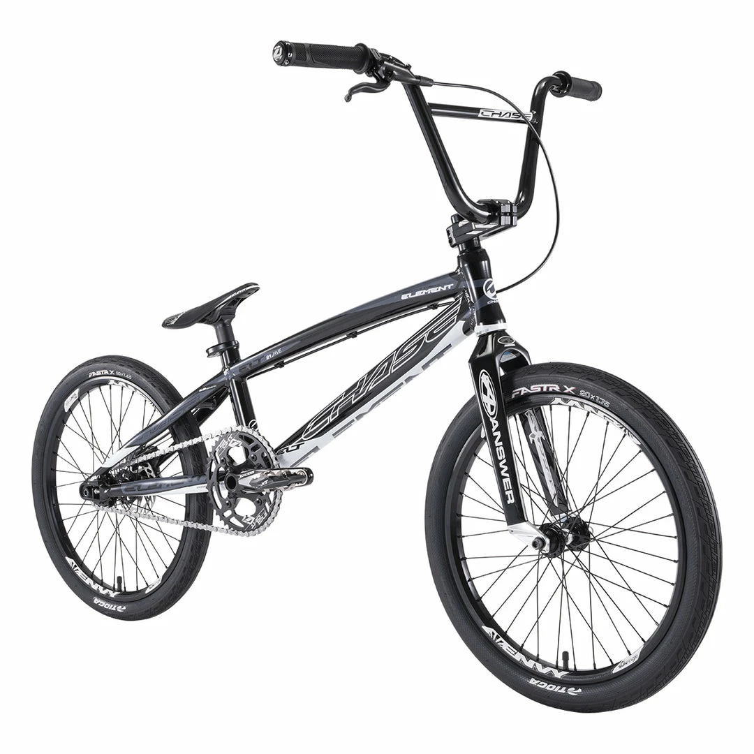 Building a custom Pro level race bike can be a difficult task while trying to stay within a budget. With the Chase 2021 Element Pro XXL BMX Race Bike-Black/White, we did all the hard work for you. We wanted to offer a bike that our Chase Factory Pro riders could race right out of the box, while taking into consideration that the cost needs to be realistic for everyday racers who still want the best bike. With the new 2021 Chase Element, we have done just that, offering you the best bike for the price! The 2021 Element utilizes the same geometry as our Championship winning ACT and RSP race frames. The Element frame features Hydroformed and butted tubing, a new integrated chain tensioner / disc brake mounting system, a Press Fit Bottom Bracket, and a 31.8 Handle Bar/Stem combo.