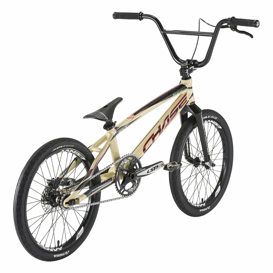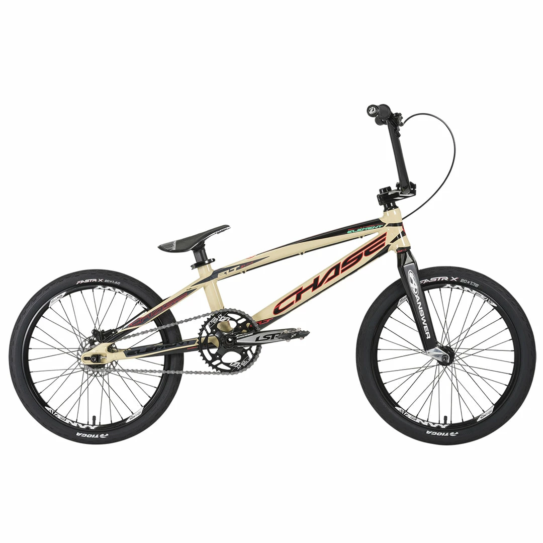 Building a custom Pro level race bike can be a difficult task while trying to stay within a budget. With the Chase 2021 Element Pro XXL BMX Race Bike-Sand, we did all the hard work for you. We wanted to offer a bike that our Chase Factory Pro riders could race right out of the box, while taking into consideration that the cost needs to be realistic for everyday racers who still want the best bike. With the new 2021 Chase Element, we have done just that, offering you the best bike for the price! The 2021 Element utilizes the same geometry as our Championship winning ACT and RSP race frames. The Element frame features Hydroformed and butted tubing, a new integrated chain tensioner / disc brake mounting system, a Press Fit Bottom Bracket, and a 31.8 Handle Bar/Stem combo.