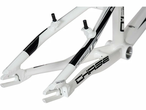 Chase leverages the best of modern technology with 7005 T4/T6 Heat treated Alloy, Hydro-formed, tapered, oval and swedged tubing, double butted and triple butted tubes, CNC 3D 7mm dropouts, CNC integrated head tubes, and beautiful & detailed graphics. Chase frames feature a double-butted top tube & triple butted down tube. The chain & seat stays both utilize a special process: muscle forming to give a unique look, give added strength & stiffness to round out, creating one of the lightest & stiffest BMX frames available. Chases adds these incredible features while remaining true to the traditional look of BMX but with cutting edge racing performance. The Hydroformed or tear drop shaped tubing that is on the RSP Frames are custom designed, radically shaped, & drawn aluminum alloy for weight savings and stiffness that help give optimal strength and rigidity to the frame. Hydro formed tubes have two main advantages. First, the narrow axis is a flatter surface, which means more surface area to carry the load, so it is stiffer & stronger across the minor axis. Secondly, the deeper axis is stiffer since the stiffness varies to the cube of the diameter, stronger to the square. When using an oval-shaped tube on a typical BMX frame it helps reduce flex but only in one direction, but on the Chase frame the tubes are oval in both directions in the main flex areas and these tubes help reduce flex in both main directions.