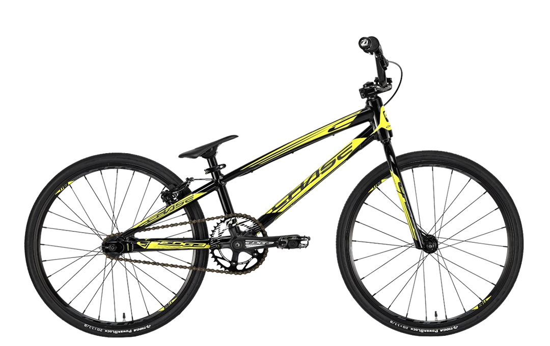 The Chase Edge bike is a pure BMX race machine. It has been one of the most sought after race bikes in BMX racing due to the history of the company and our attention to detail. Each year we want to improve our design and style and for 2020, we even surpassed our own expectations! The 2020 Chase Edge frame look has changed drastically with a Black and Neon design and this showcases the upgraded Edge frame that has Triple butted Premium Ultralight Alloy Hydroformed tubes on the entire Edge complete bike size range. The Chase Edge has some of the best parts made for a complete BMX race bike: Tioga PowerBlock Tires, a KMCChain, Tektro brake set, Insight chainring, grips and chain tensioners, and Pivotal seat/seat post combo, as well as a rear cassette hub. All these parts together help give you the Edge over your competition, and to make the 2020 Chase Edge one of the most dialed in complete bikes in BMX. Edge out the competition on and off the track with the new 2020 Chase Edge complete race bike!