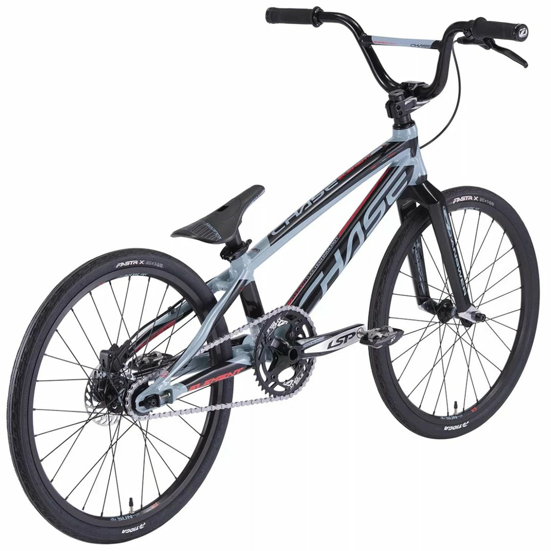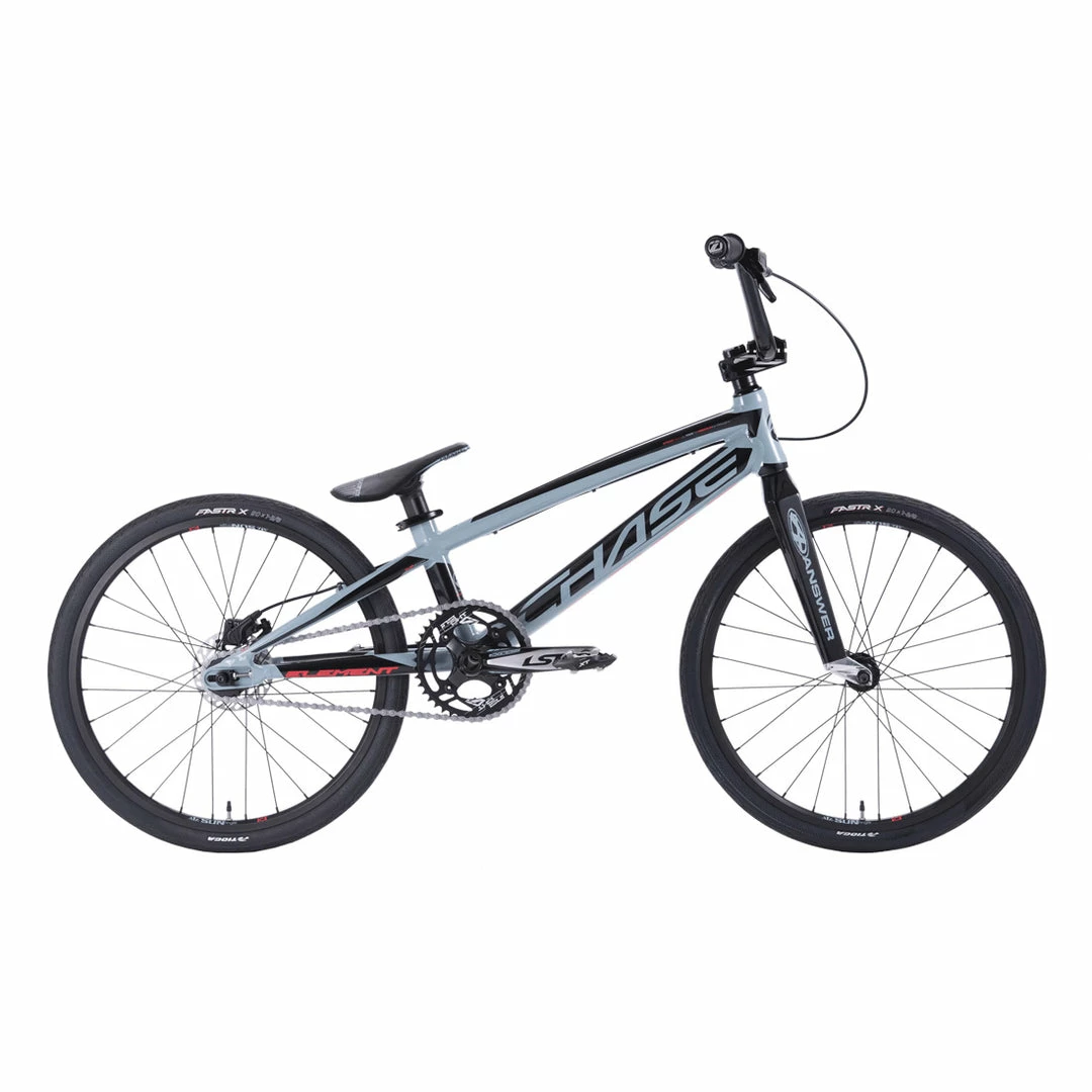 Chase Bicycles have gone and made for you the Chase 2022 Element Expert BMX Race Bike-Black/Slate, a pro-level, high-end bike without the astronomical price tag you might have if you built a custom bike yourself. This bike has it all right out of the box. The frame is hydroformed 7005 T6 Alloy with an Answer Dagger Carbon fork sticking out the front. With an Excess crankset, Sun rims, and Tioga Powerblock tires rounding out the package. Stopping power lovingly provided by a hydraulic disk brake system.