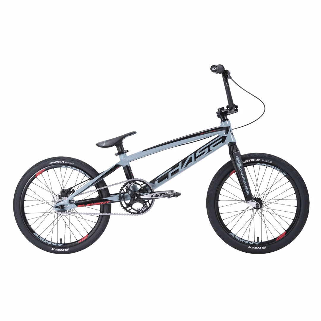 Chase Bicycles have gone and made for you the Chase 2022 Element Pro XL BMX Race Bike-Black/Slate, a pro-level, high-end bike without the astronomical price tag you might have if you built a custom bike yourself. This bike has it all right out of the box. The frame is hydroformed 7005 T6 Alloy with an Answer Dagger Carbon fork sticking out the front. With an Excess crankset, Sun rims, and Tioga Powerblock tires rounding out the package. Stopping power lovingly provided by a hydraulic disk brake system.