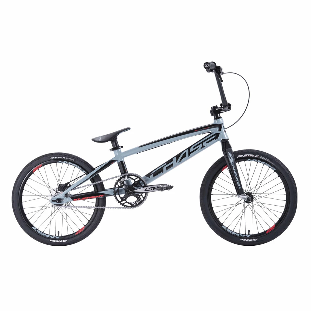 Chase Bicycles have gone and made for you the Chase 2022 Element Pro XXL BMX Race Bike-Black/Slate, a pro-level, high-end bike without the astronomical price tag you might have if you built a custom bike yourself. This bike has it all right out of the box. The frame is hydroformed 7005 T6 Alloy with an Answer Dagger Carbon fork sticking out the front. With an Excess crankset, Sun rims, and Tioga Powerblock tires rounding out the package. Stopping power lovingly provided by a hydraulic disk brake system.