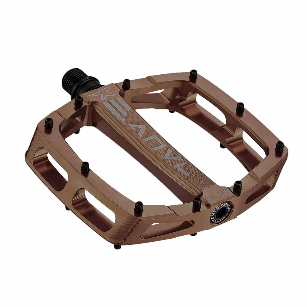 The Anvl Tilt V3 Alloy Platform Pedals at J&R Bicycles feature an oversized footbed that is great for riders with larger feet or looking for a bit more room. The 10 replaceable 9mm pins are fastened to a fully CNC’d 6061 aluminum alloy pedal body that features Anvil’s Arched Radius Concavity (ARC) for a killer grip. You’ll experience smooth pedal strokes thanks to two oversized, sealed outboard bearings and inboard DU bushing.