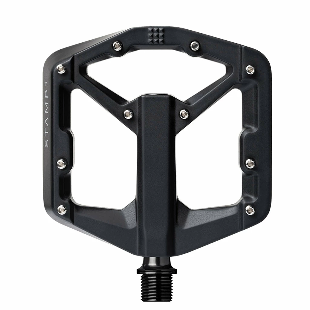 The Crank Brothers Stamp 3 Platform Pedals with an AM60B magnesium alloy body are a jump up from the Stamp 1 pedals. Featuring a concave profile with 10 adjustable pins per side, high quality Igus inner bearing with a double cartridge outer bearing.