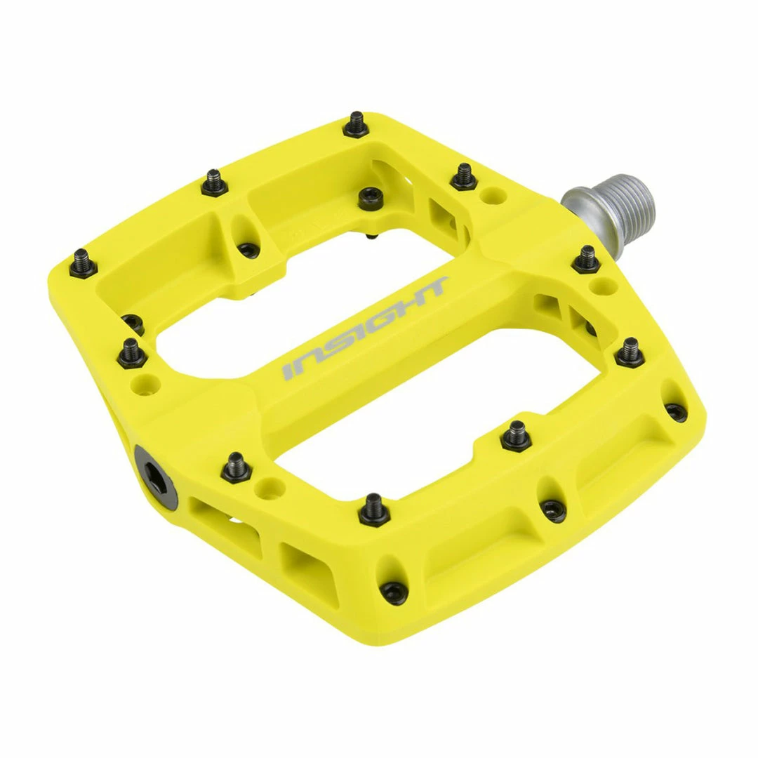The Insight Thermoplastic Pedals combine the lightweight and lower price point of thermoplastic pedals with the screw in traction pins found on Insight’s Pro alloy pedals. Available in six different colors these are some good-looking pedals. Weird to say that about pedals, I know, but they do look good.