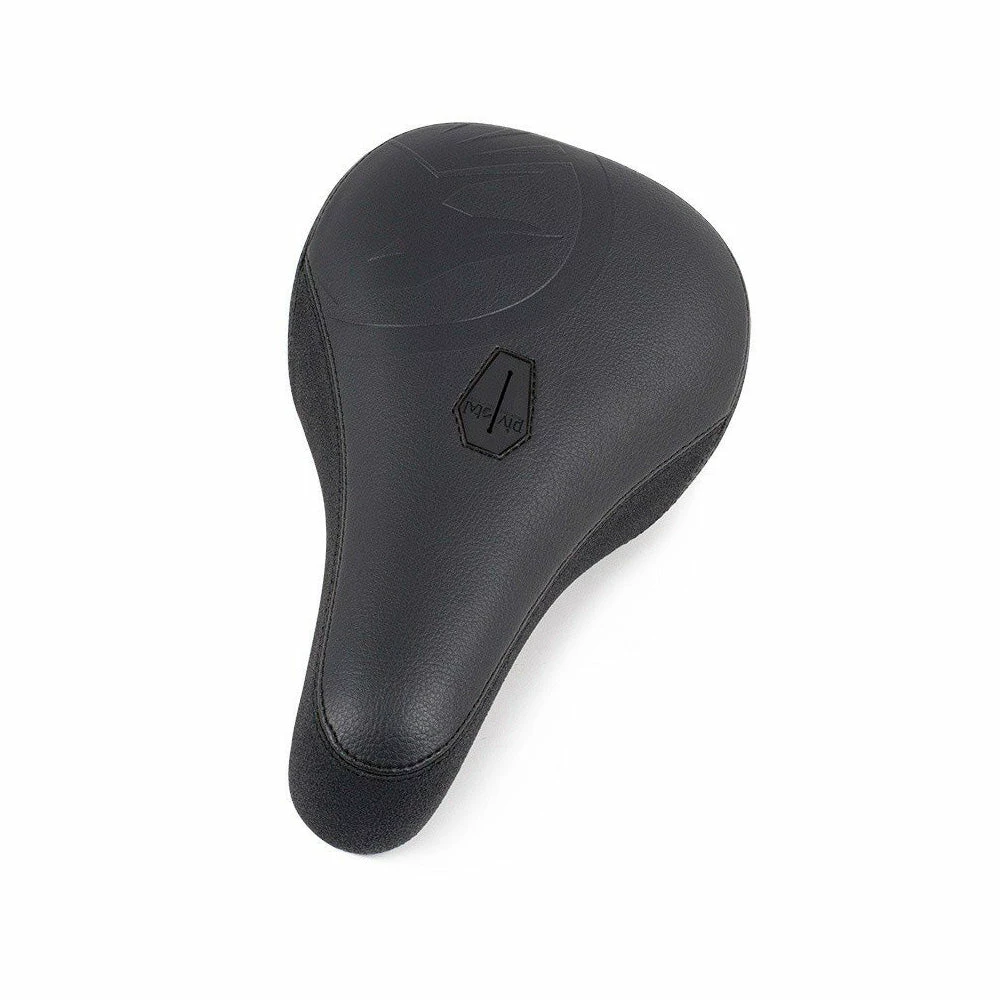 Shadow Conspiracy Crow’d Pivotal BMX Seat is constructed from synthetic leather and features grippy, rubberized side panels. A debossed Shadow Crow logo adorns the top of the seat along with a woven SC label on the side. The reinforced nose helps protect the hidden guts tucked up and around the slim base.