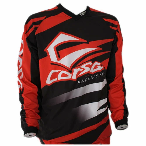 TheCorsa Warrior BMX Jersey-Red is designed for the athlete in mind, offering the Corsa Racewear signature pocket on the upper arm, along with impressively detailed graphics.