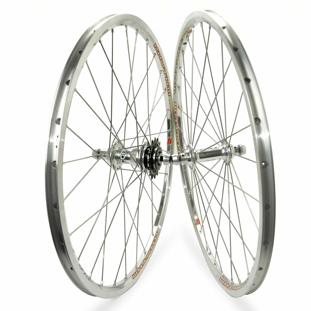 Crupi’s New Expert Cruiser race wheels feature our new Quad 28H hubs made from 6061-T6 aluminum with 3/8″ chromoly center axles for increased strength and stiffness, precision sealed bearings throughout and a Shimano compatible aluminum driver. Laced with 15G spokes and alloy nipples to 28H Rhythm Section 24 x 1-3/8″ rims, extruded from 6061-T6 aluminum for strength and durability. Includes 16T aluminum cog.