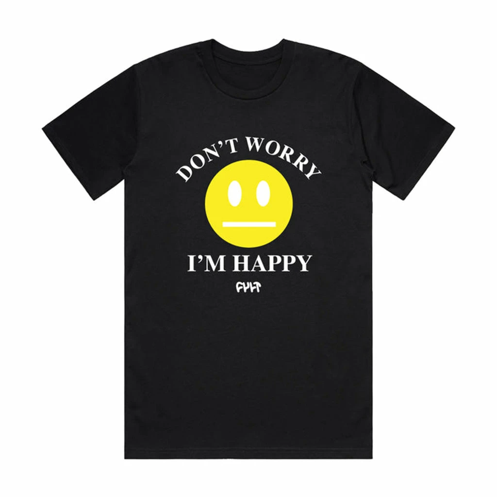 Cult Don’t Worry I’m Happy T-Shirt-Black APPAREL