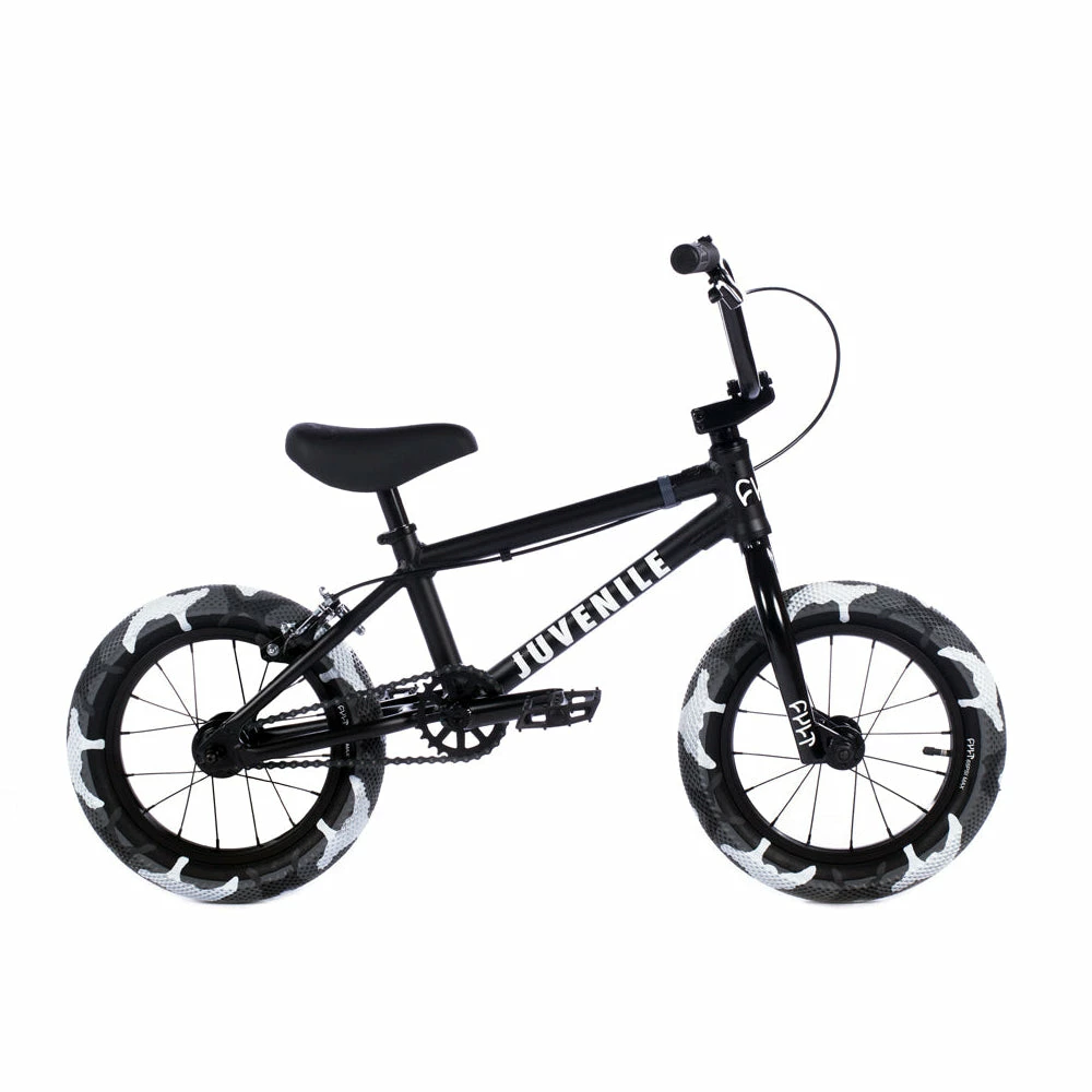 The Cult 2022 Juvenile 14″ BMX Freestyle Bike-Black/Grey Camo Tires is one of the raddest bikes available for your little ripper. Falling firmly into the “I wish I had a bike like this when I was a kid” category, this bike is all black and comes with those awesome Cult x Vans Wafflecup camo tires. The frame is aluminum so your kid won’t feel like they are trying to harness a wild steel beast that weighs more than they do. Do note, this bike has a cassette rear hub and a caliper hand brake. No coaster brake! Don’t worry, the little kids get it just as easily as the coaster brake, plus the brake lever is adjustable so those little hands can handle it.