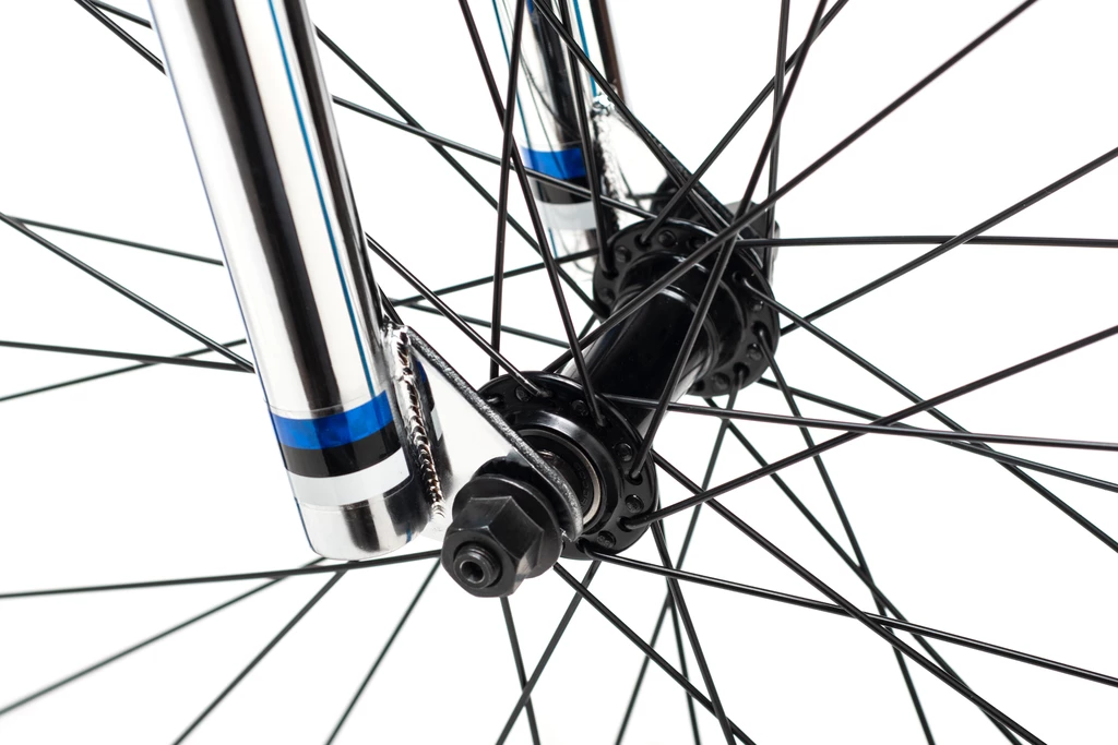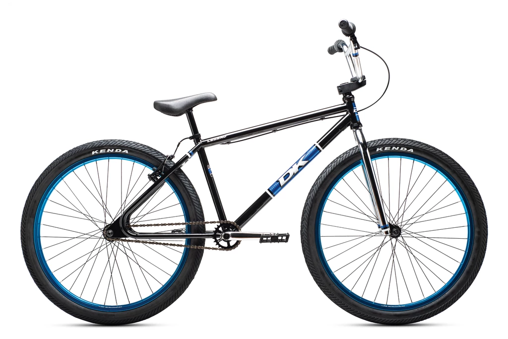 A modern classic, right out of the gate. The DK Legend 26” is brand new, but it’s roots go back to the early days of bicycle motocross. Rolling on 26-inch “cruiser” wheels, the Legend sits on a chromoly main frame featuring a throwback looptail stay configuration, finished off in chrome with iconic DK graphics. The look is old school, but the short rear end and progressive geometry make it easy to wheelie and stable in in the air. As cool is looks, the Legend 26” is built to ride: Doublewall alloy rims and sealed bearings throughout make for easy rolling and hassle free maintenance. 3-piece chromoly cranks and a thought out 25-11 gear make it go, while Wise U-brakes make it stop. Aftermarket DK grips, Jump stem, and PC pedals round out the parts package. For Rad Dads or kids on the cruiser tip, the DK Legend 26” is ready for the track, the trails, or a trip to the corner store, all at a price that won’t slow you down. RECOMMENDED RIDER SIZE: 5′ 6″ – 6’+