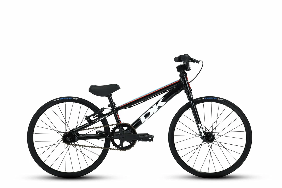 The new DK Swift series was created as an affordable start to the BMX experience for the track, the trails, or cruising through the neighborhood. Each bike in the Swift collection features a strong and light aluminum frame, with steady geometry that is a little more forgiving for riders on the learning curve. Aluminum components like the 3-piece cranks, stems, and rims team up with a blend of sturdy steel parts for a balance of weight, strength, and nimble handling. The end result is a lightweight bike, allowing full control for the rider and easy for parents to lift into the car. Attention to details like all-terrain tires and lightweight seat/post combos in sizes to match each model make these bikes perform without taking out a loan to pay for them. DK’s roots are in racing, but the DK Swift series bikes are as much at home on the local bike path as they are at the BMX track.