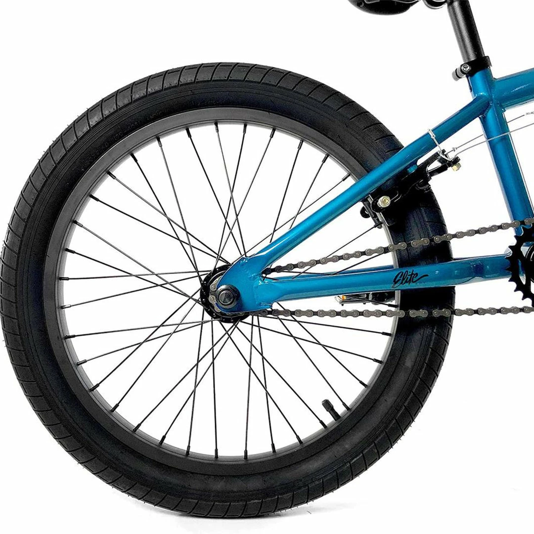 The Elite BMX Stealth 20″TT BMX Freestyle Bike-Blue is a great find for those looking for their first BMX Freestyle bike. The frame, bars, and fork are made of high-tensile steel with a 20 inch top tube. The top load stem is alloy and has a 50mm reach. One piece chromoly cranks are connected to an unsealed 19mm bottom bracket and have plastic platform pedals. With 2.5 inch street tires, low profile rims, and a freestyle specific 25-9 gear ratio, this bike will have you confidently exploring all that BMX freestyle can be.