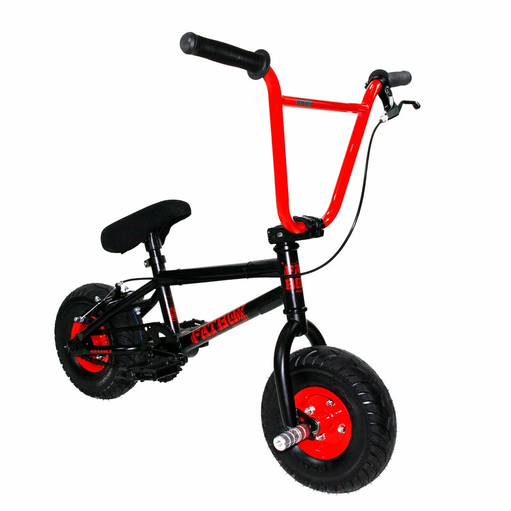 The Original FATBOY Mini BMX in Black and Red finish. The Pro series is for those seeking extra durability and strength with an upgraded 3-piece crank set, pedals, and Reinforced frame. its able to with stand some of the Gnarliest Bomb Hard tricks out there.Â