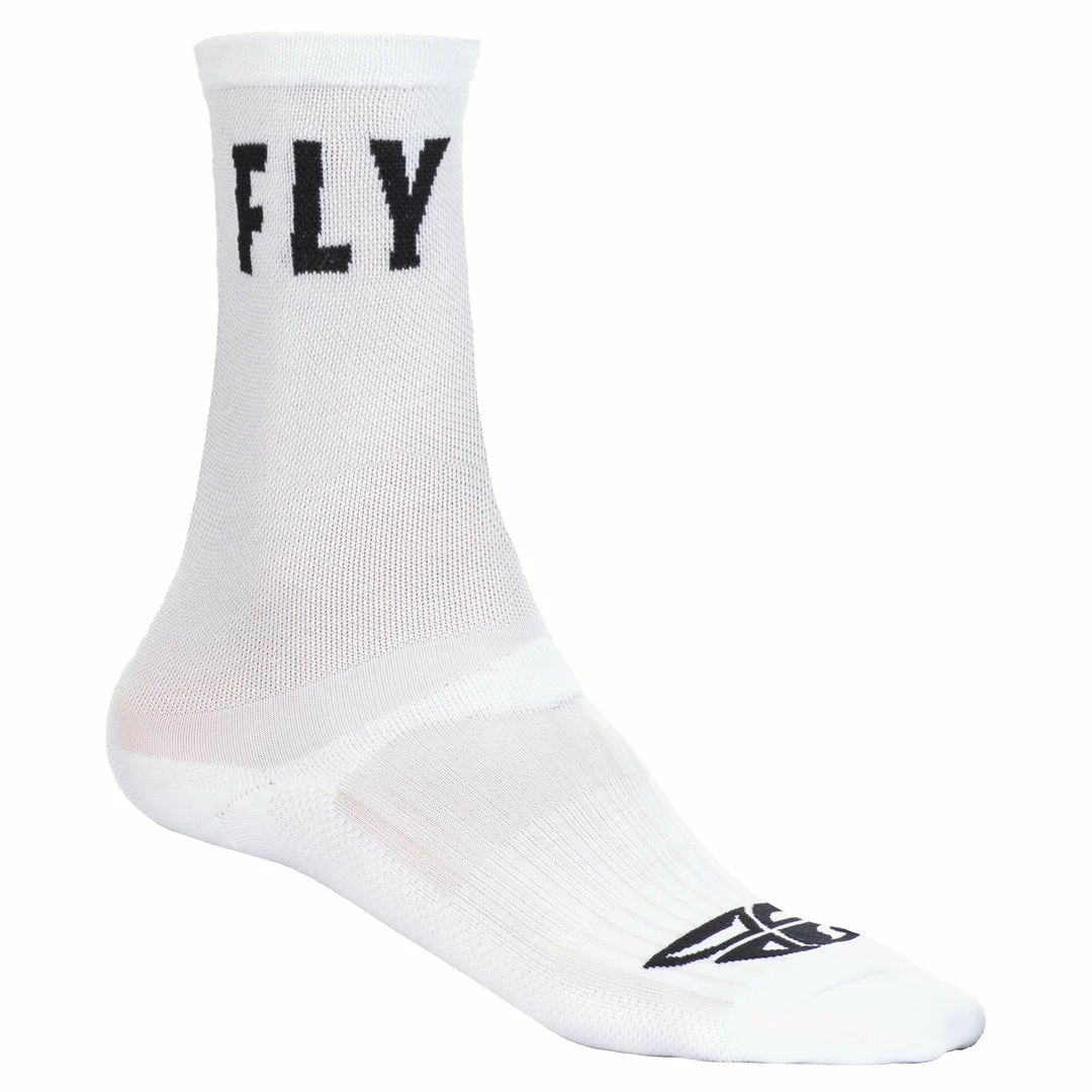 Fly Racing Crew Socks-White have woven graphics so there’s no extra material to rub against your foot and be a distraction. Featuring an ultra-weave construction with arch and ankle supports. Why not treat your feet?