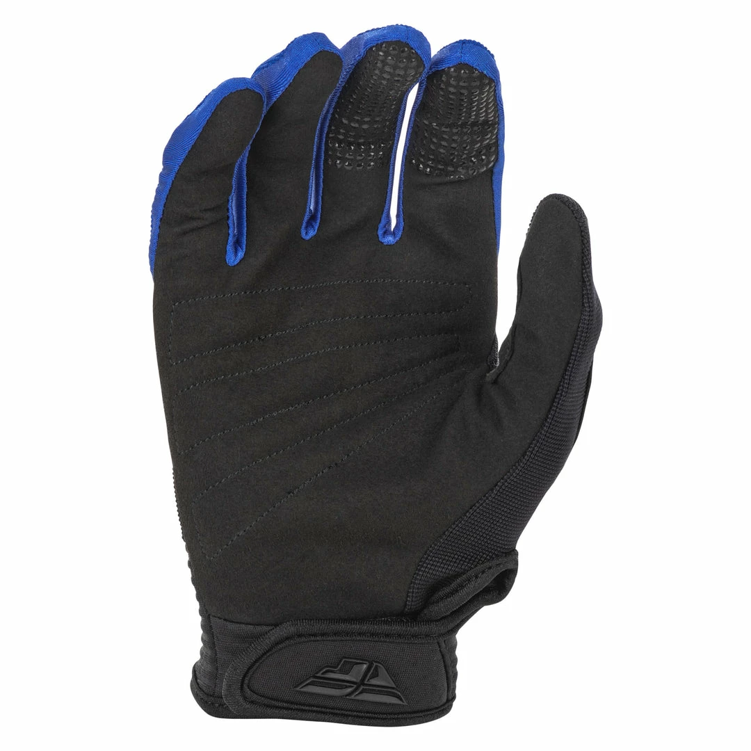 The Fly Racing 2022 F-16 BMX Race Gloves-Blue/Black are lightweight, flexible gloves with palms and thumb areas reinforced with a double layer. The Fly logo is both flexible and protective and the finger sidewalls are that awesome four-way stretch that just makes everything feel great. There are grippy silicone grippers on the two brake fingers and an adjustable wrist strap.