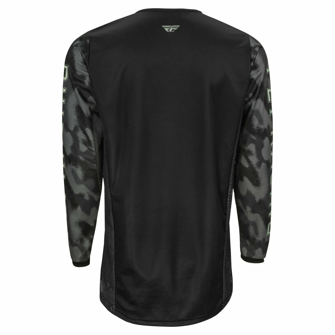 Fly Racing Kinetic S.E. Tactic BMX Race Jersey-Black/Grey Camo feature shortened elastic cuffs that are always somehow more comfortable than those really long ones that always seem too tight, too long around your wrist. Fly brings the comfort with mesh side panels and a tagless collar. The extra-long rear hem will stay tucked in all day.
