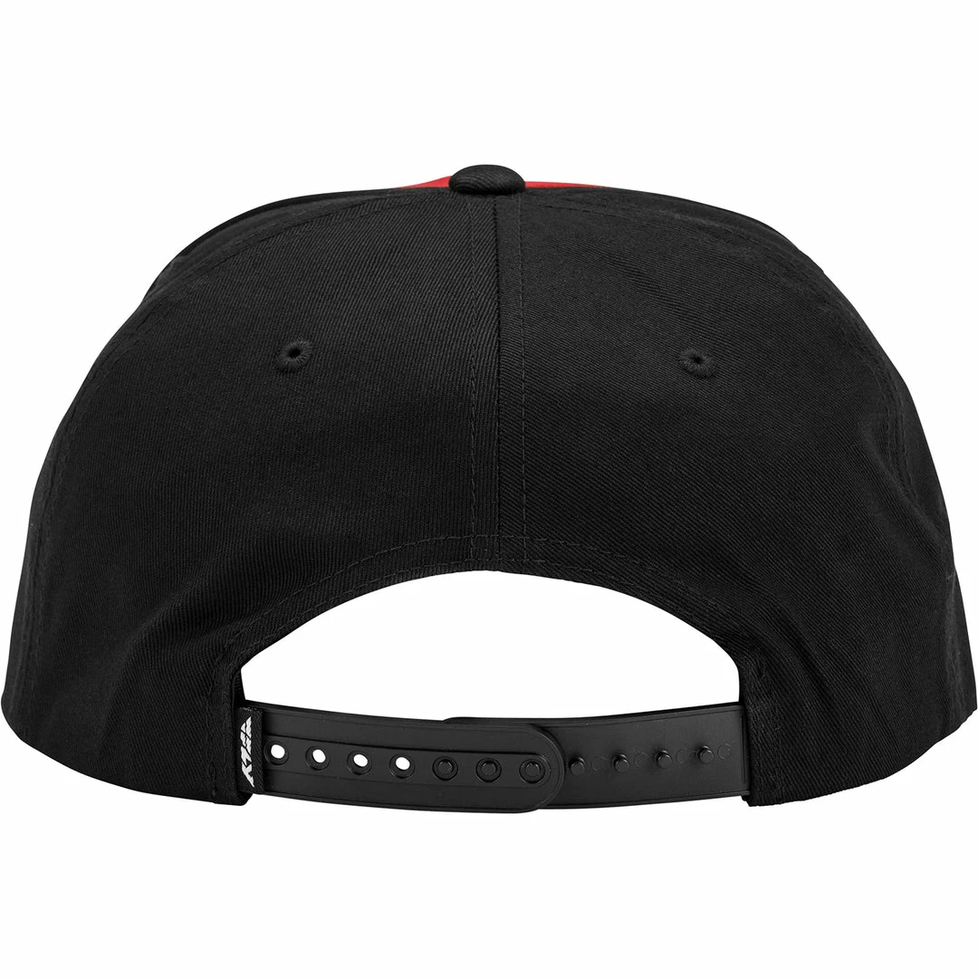 The Fly Racing Evo Hat-Red/Black is a stylish flex fit adjustable snapback. Fly Racing started manufacturing handlebars and helmets, but now you can wear their hats as a fashion statement. One size fits most people. Keep the hat on tight and stay fly while being a Fly Racing fashionista.