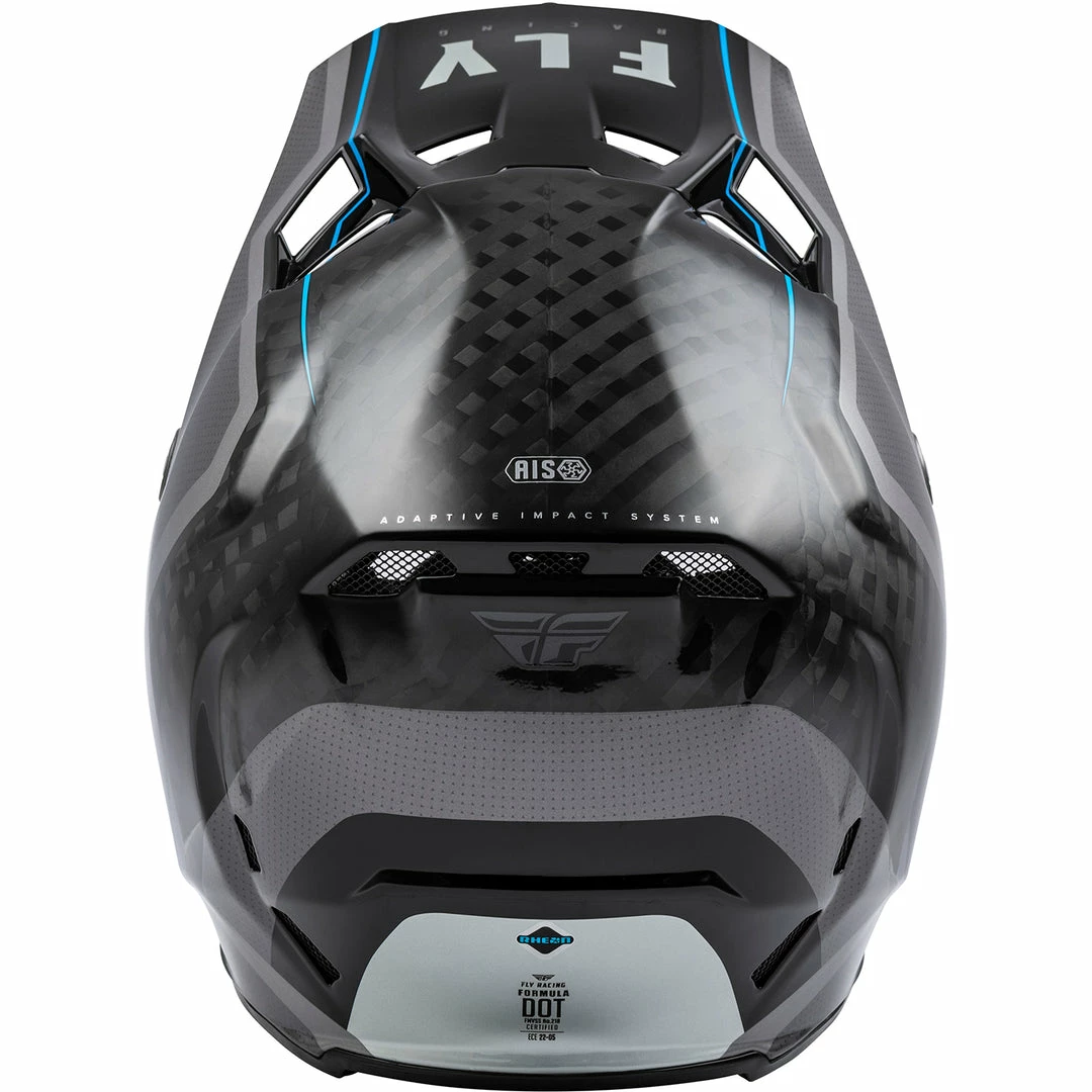 Opt for the absolute in total head protection with FLY Racing’s Fly Racing Formula Carbon Axon BMX Race Helmet-Black/Grey/Blue. Its Adaptive Impact System (AIS) whose high-performance ecosystem of structural designs and energy mitigating materials — including RHEON, a leading-edge viscoelastic material — is fine-tuned to greatly improve impact management over traditional helmets. Developed in collaboration with the world’s foremost leaders in helmet safety. Tested under rigorous scientific review to exceed ECE and DOT standards. Enjoy elevated defense against a wider range of impacts when you ride with the Formula.