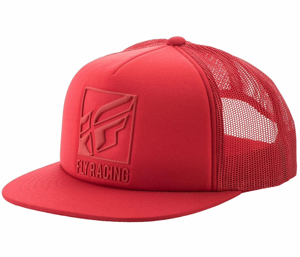 The Fly Racing Lumper Hat features a classic trucker back mesh with a FlexFit flat bill, snapback closure, and a bonded TPF logo.