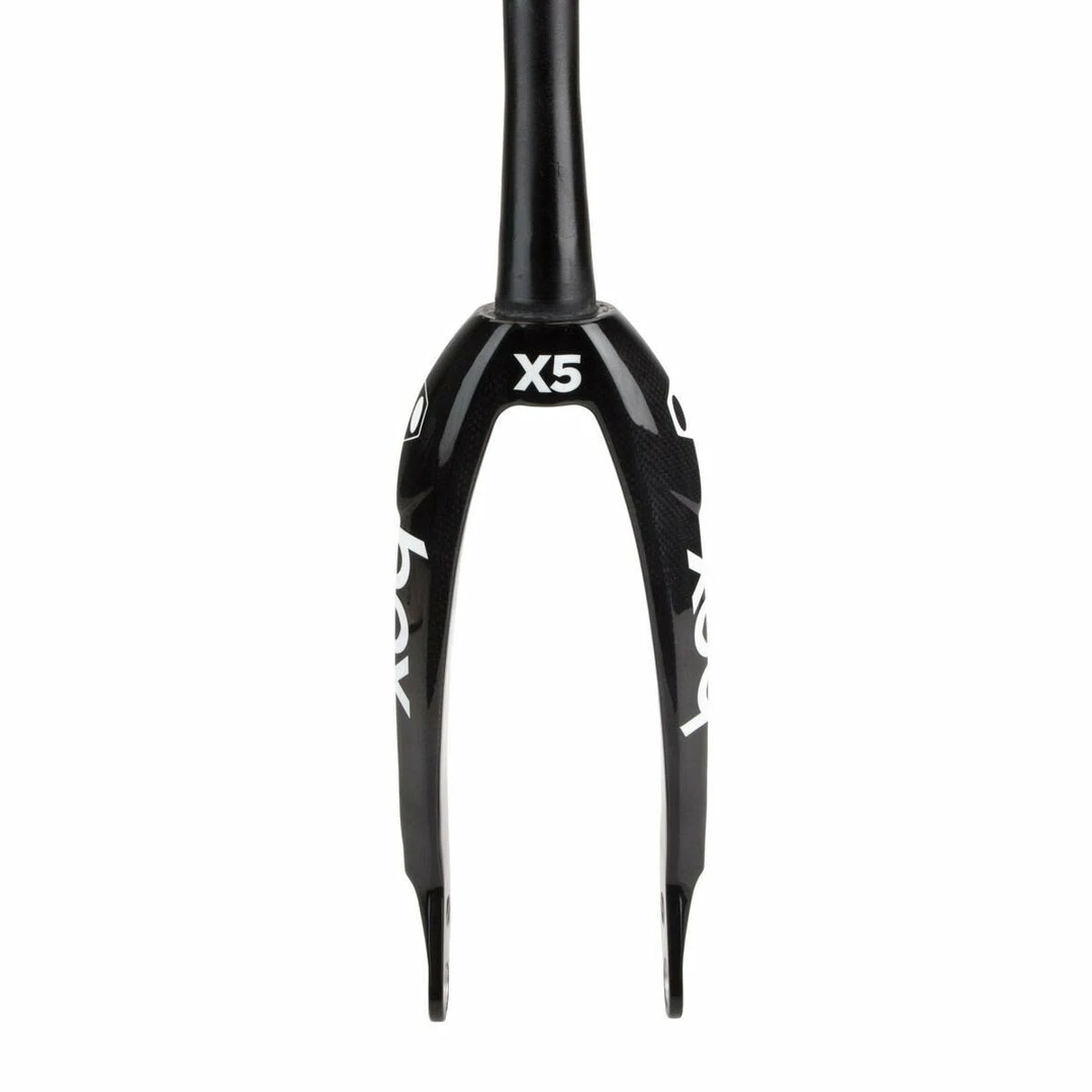 Box X5 20mm Carbon Fork-Pro 20″-1.5″ to 1 1/8″ Tapered-20mm are designed purely with BMX racing in mind. The new oversized X5 tapered steerer tube fork features an all carbon crown and leg construction, cold-forged and CNC machined dropouts and a rider-specific design that is strong, lightweight and extremely reliable, to meet the demands of the fastest racers.