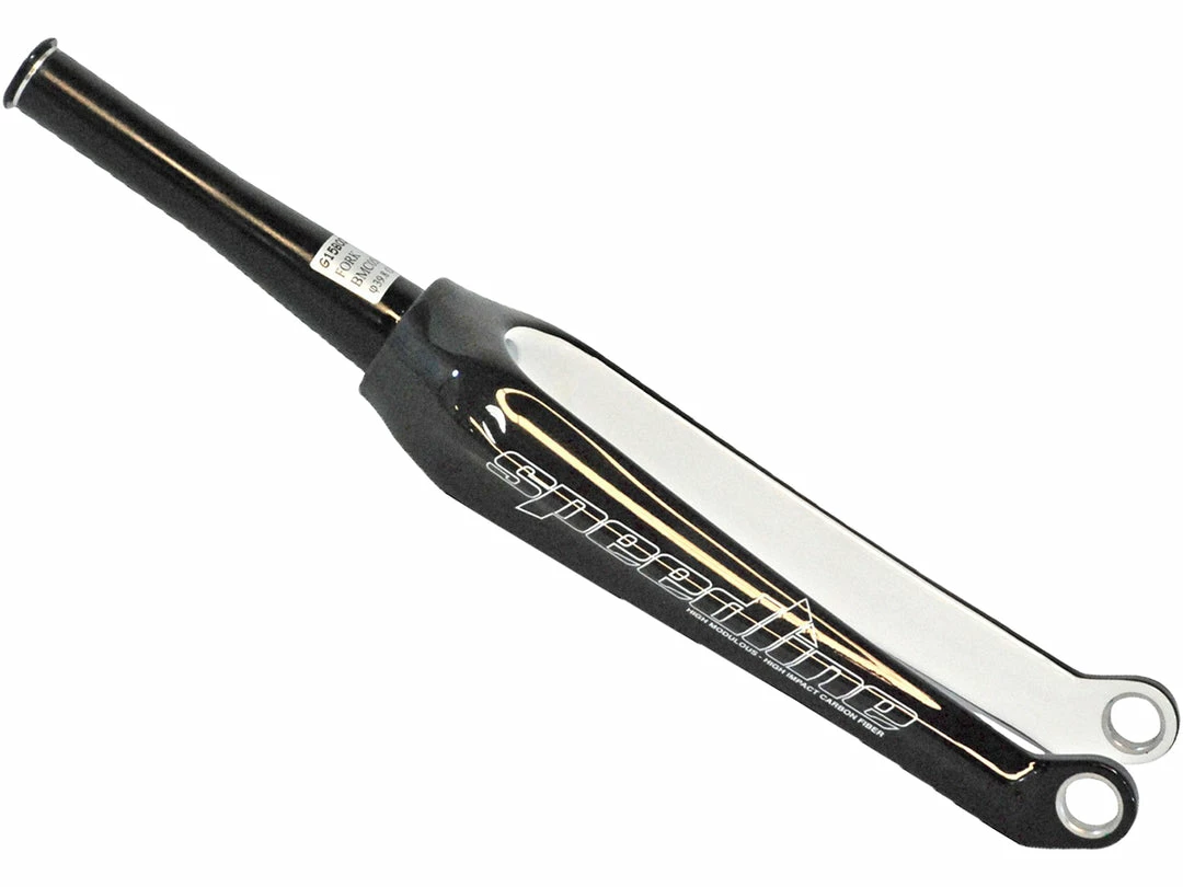 The Speedline Tapered Carbon Fiber BMX Pro fork is produced out of a special High Modulous, Nano-Carbon Composite Material. The nanocarbon allows for stronger, lighter, stiffer carbon parts with a higher strength than before. It is 27% stronger than other carbon materials. It is also more flexible and has a higher fatigue resistance. Built using high-impact compaction, solid inner forms during the curing stage, compared to typical air-bladder processes, producing high-pressure compaction which means more consistent products with denser material and minimal voids.