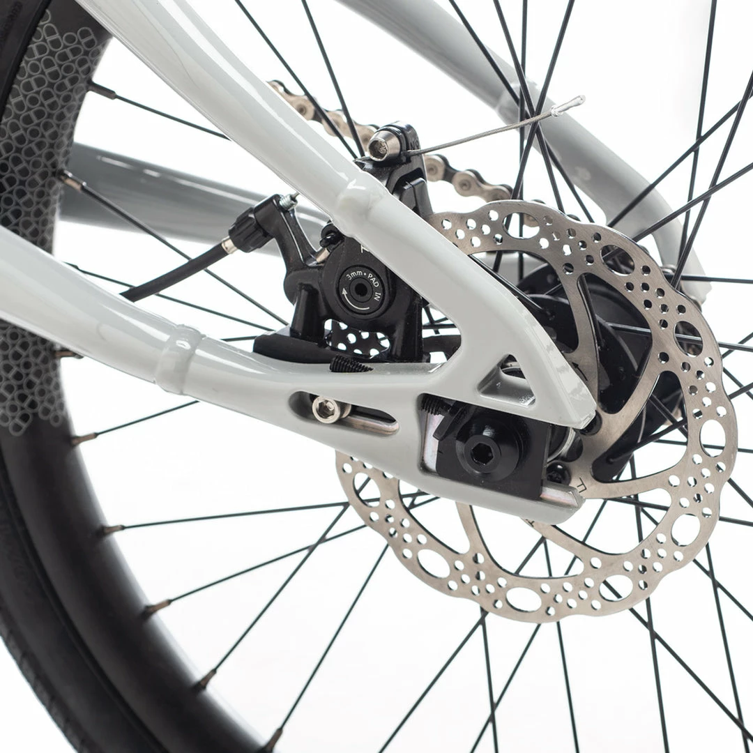 NOTE: The DK Zenith Disc frame is compatible with flat mount disc brakes only. Flat-mount is more compact and lighter than post mount. With flat-mount, the rear caliper affixed with two bolts running through a flattened frame surface and then threading directly into the caliper (or an adapter affixed to the caliper).