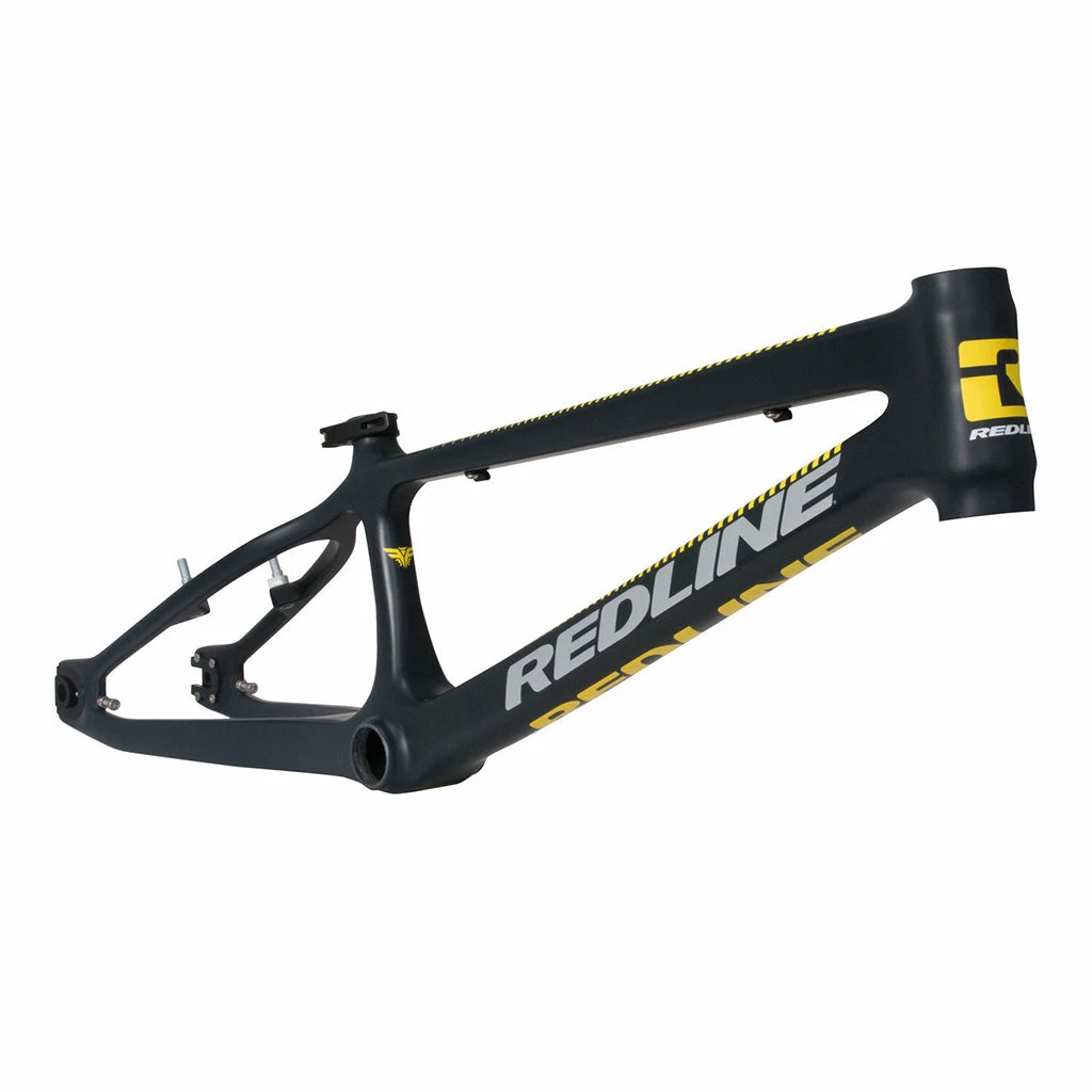The Redline Flight Carbon Pro BMX Frame-Black is an all out racer’s dream frame. Featuring lightweight Redline Carbon Technology (RCT) frame material, integrated chain tensioners, and integrated convertible dropouts so you can use either 3/8 inch or 15mm through axles. Frame is specced for a press-fit BB-86 and designed with team-approved, race-winning geometry. Available in Pro XL (21″ tt) and Pro XXL (21.7″ tt).