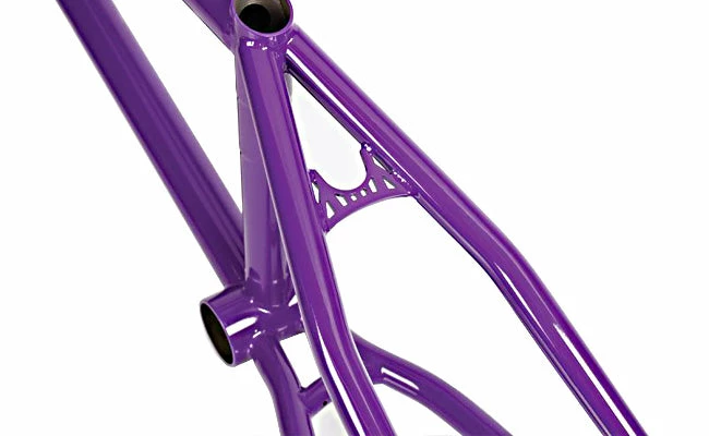 Edwin Delarosa signature frame featuring heat–treated, double butted (with internal gussets) Mugen tubing (20% stronger than 4130 chromoly) for the top–tube and down–tube. The rest of the tubing is heat–treated 4130 chromoly. External down–tube gusset. The chain–stays and seat–stays are both tapered and designed to fit wide tires. The seat–tube is externally butted and works with a wedge post only (included). Removable brake mounts thread into the seat–stays. Uses an Integrated headset (11/8″) and a MID bottom bracket.Â